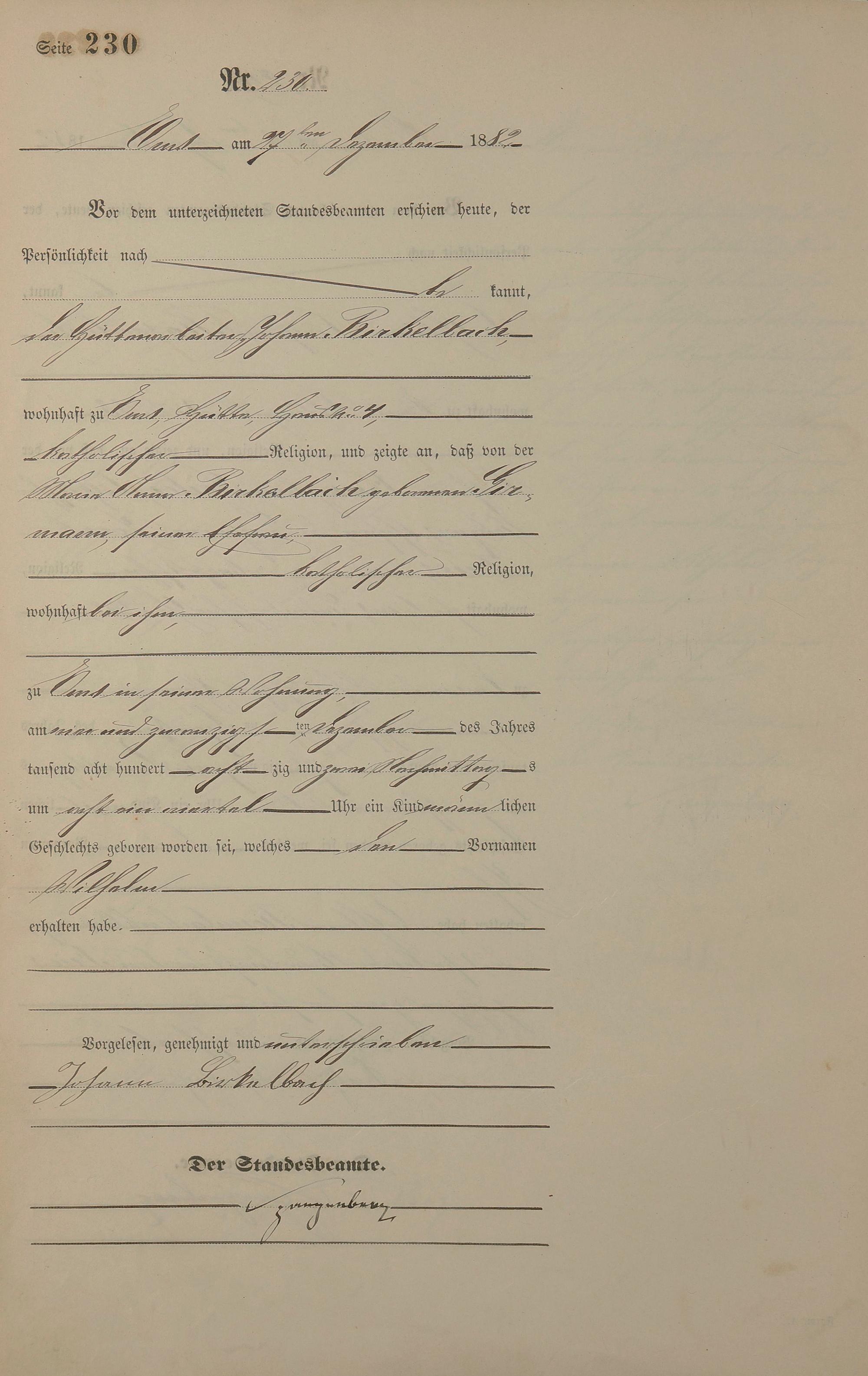 Geburtsregister 1882