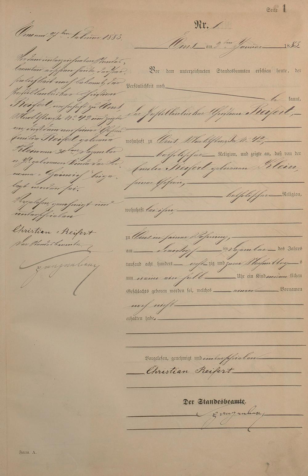 Geburtsregister 1883