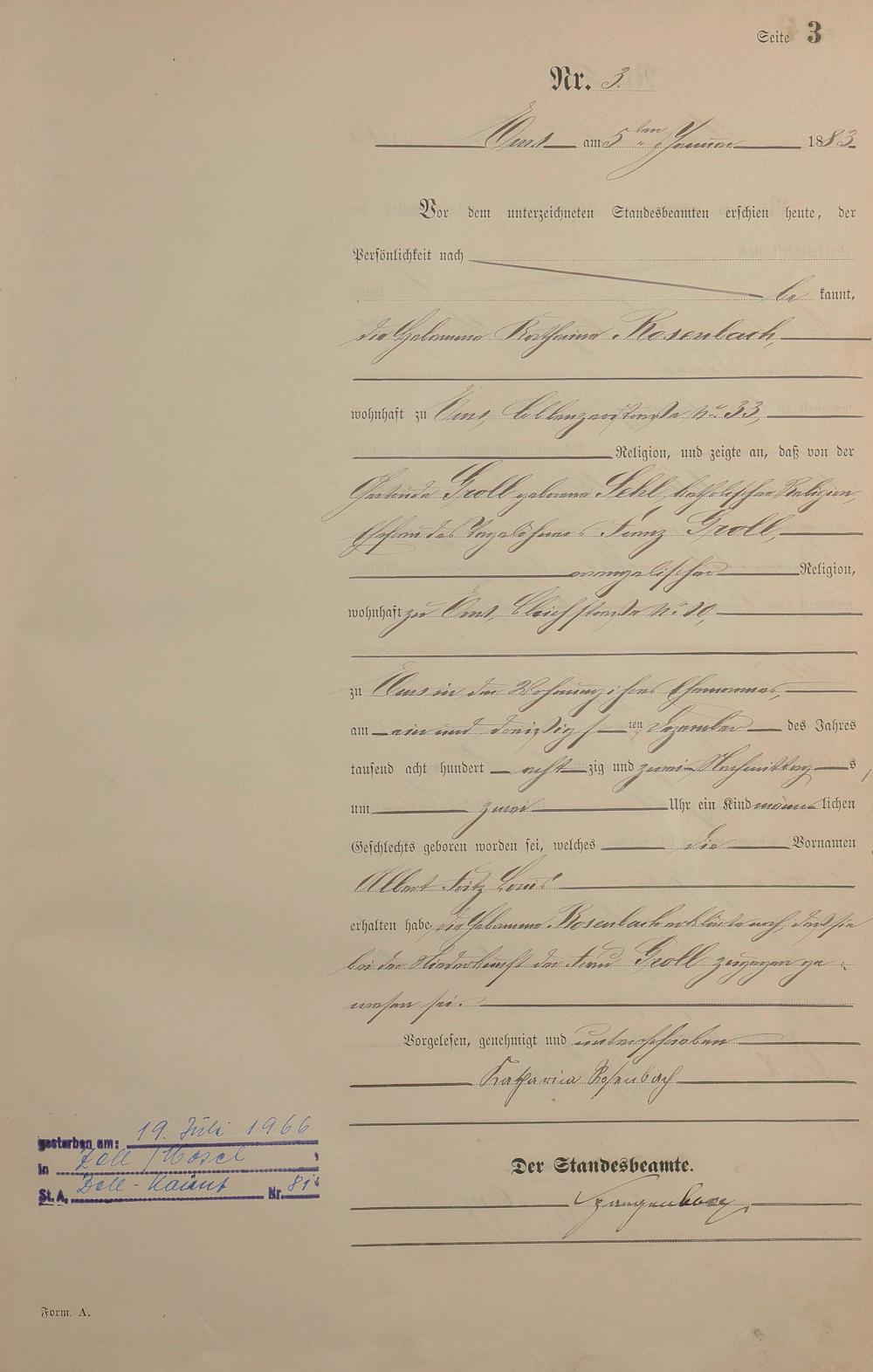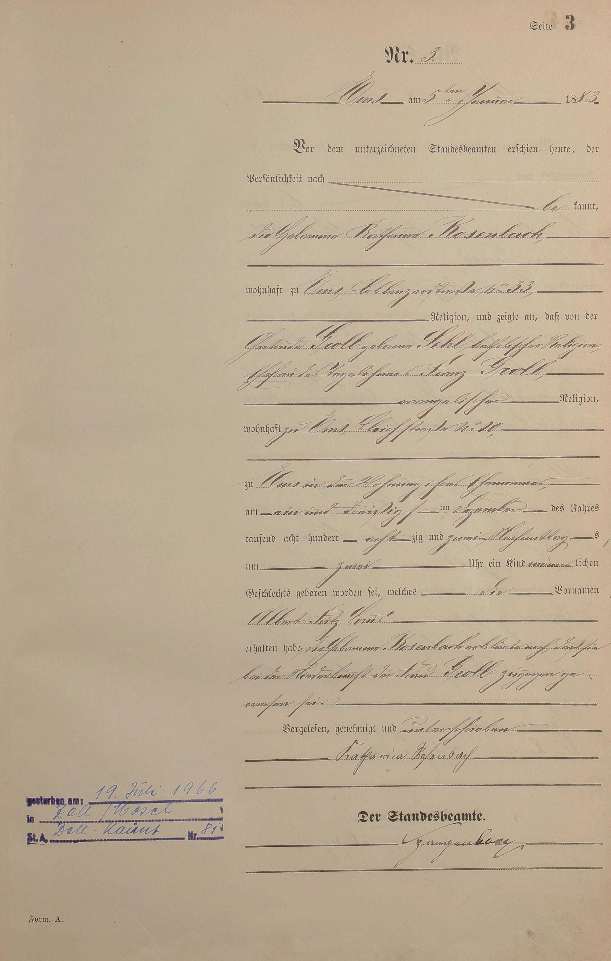 Geburtsregister 1883