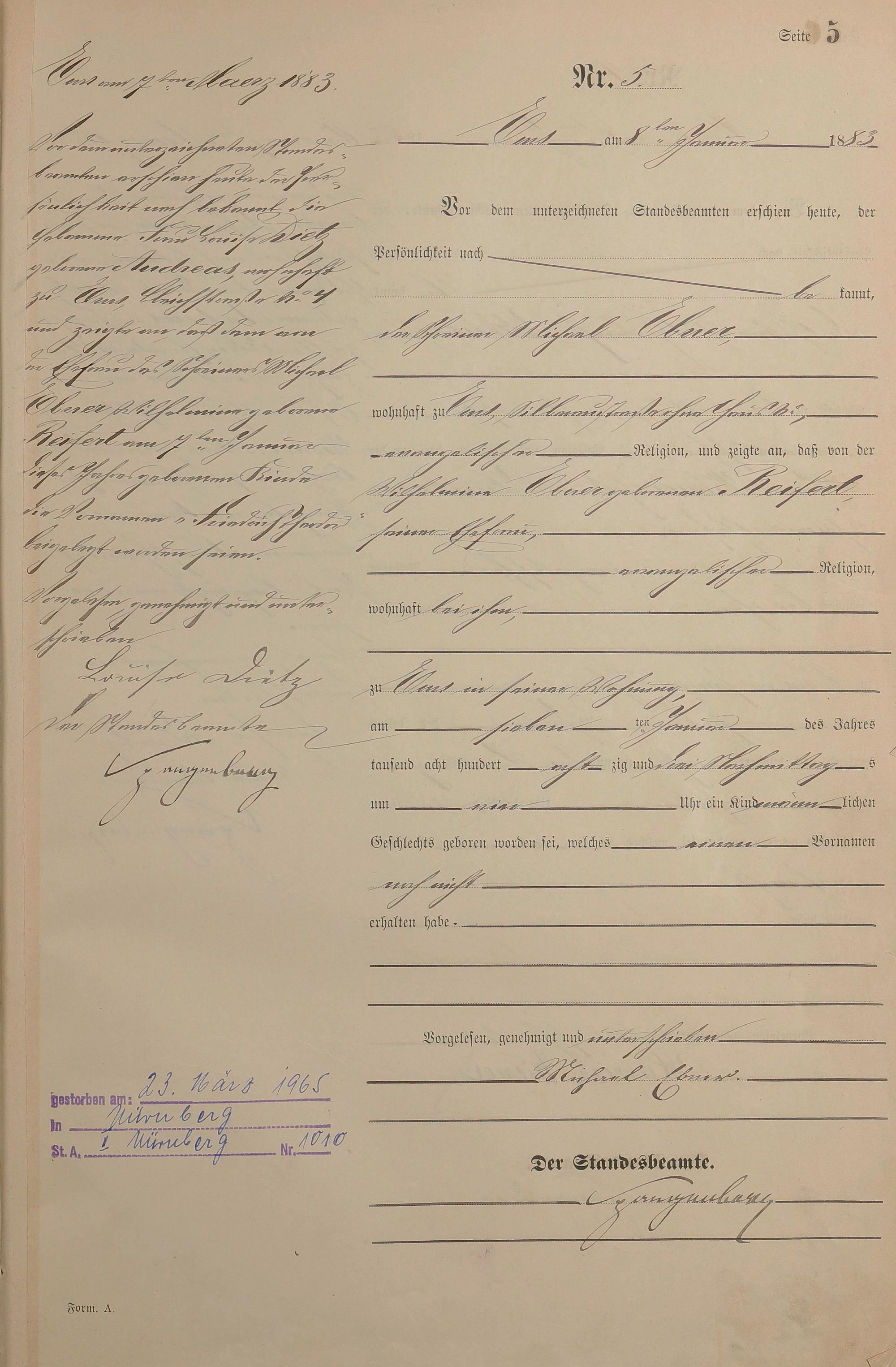 Geburtsregister 1883
