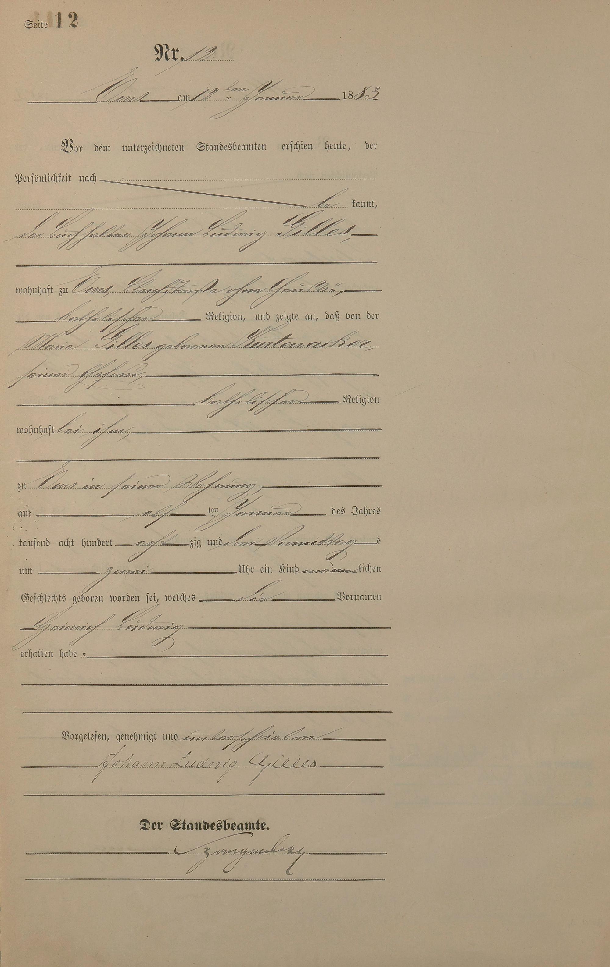 Geburtsregister 1883