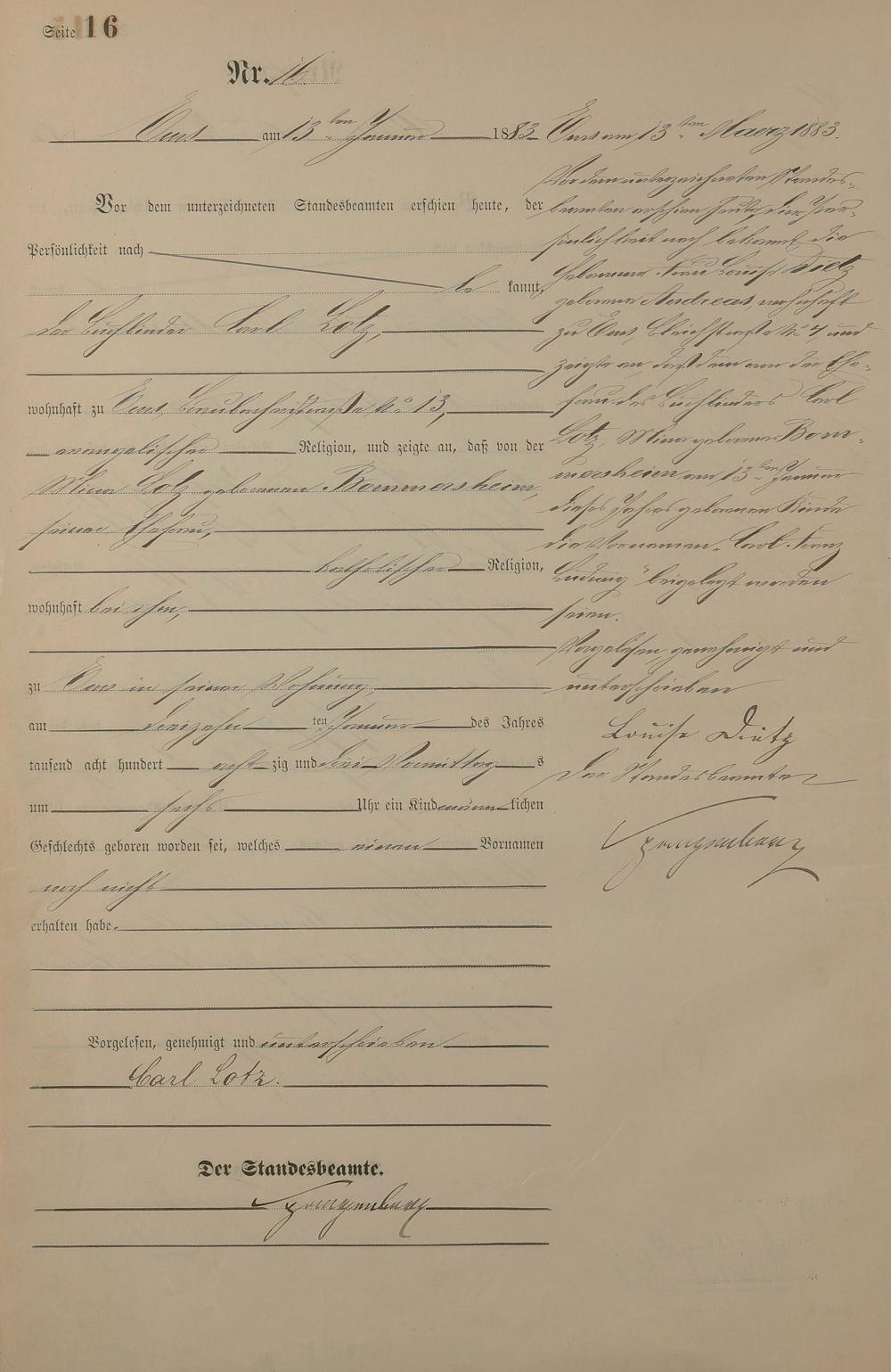 Geburtsregister 1883