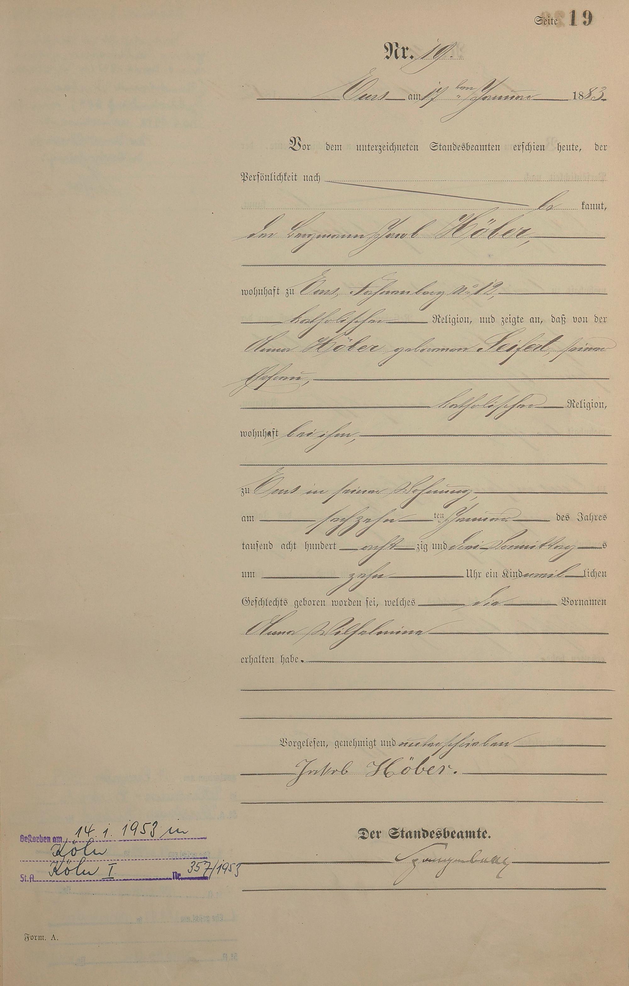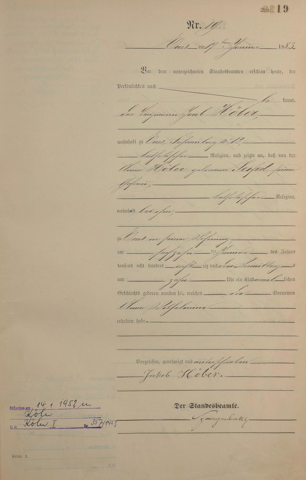 Geburtsregister 1883