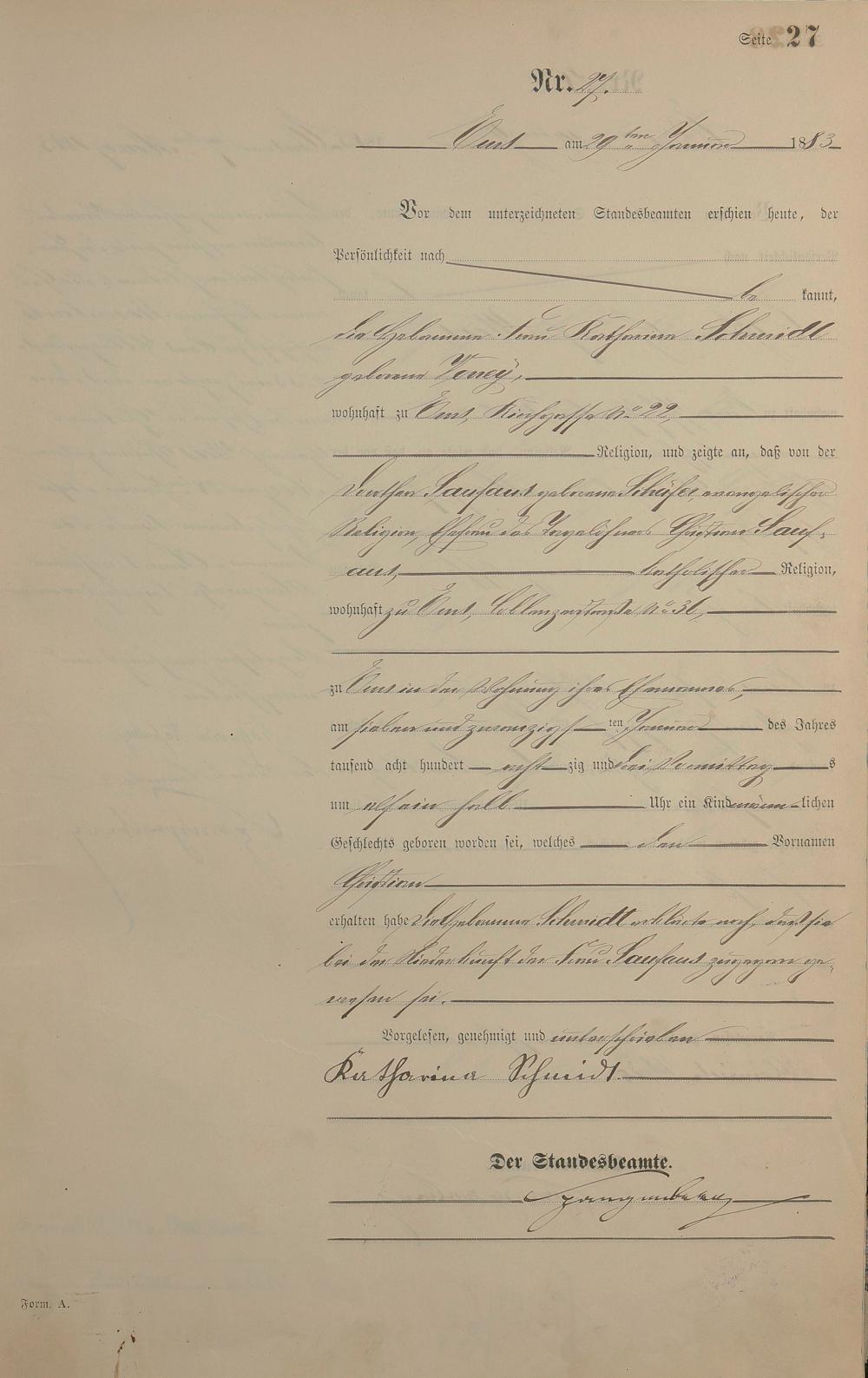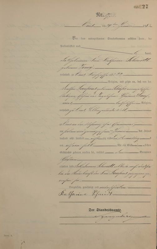 Geburtsregister 1883