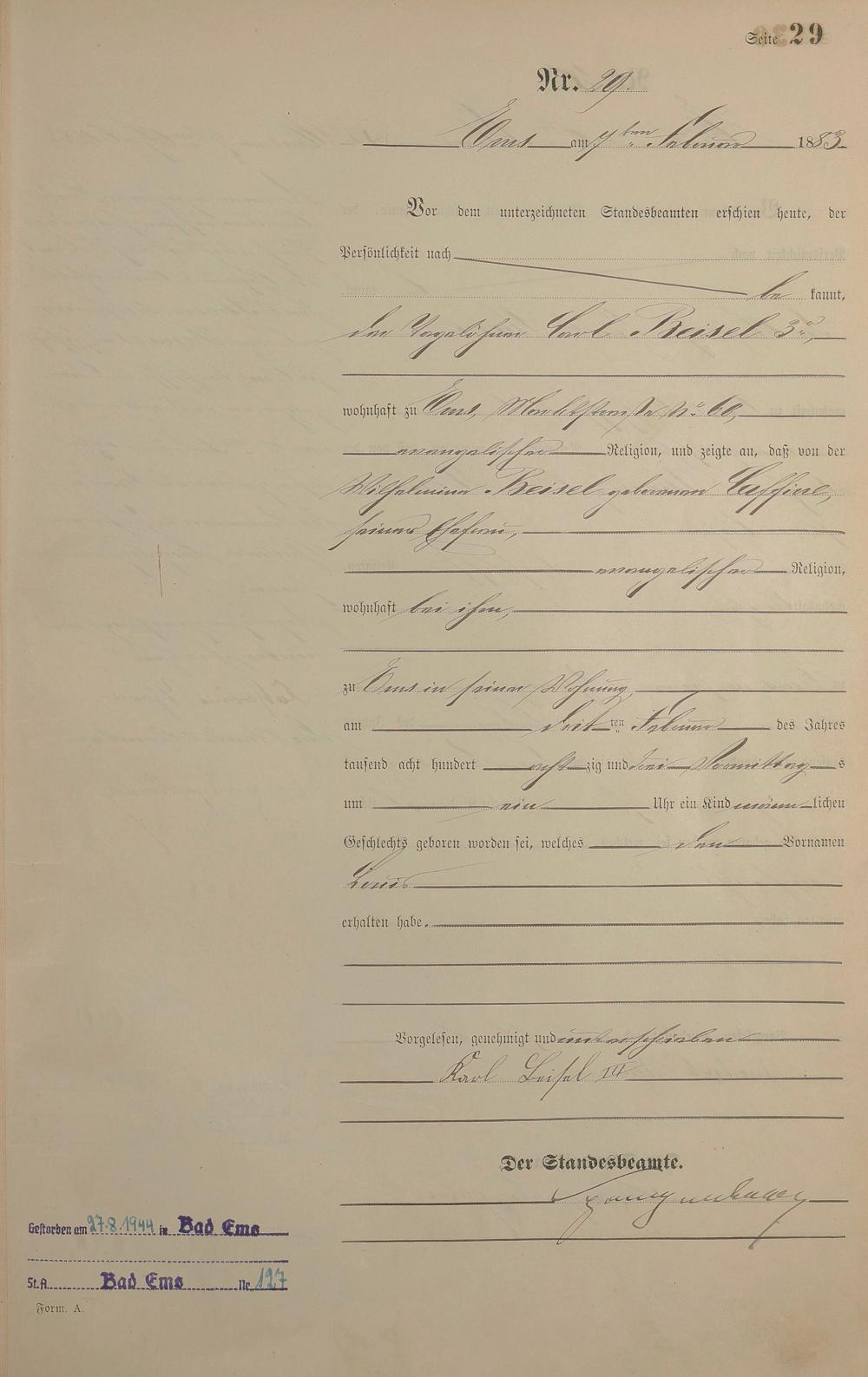 Geburtsregister 1883
