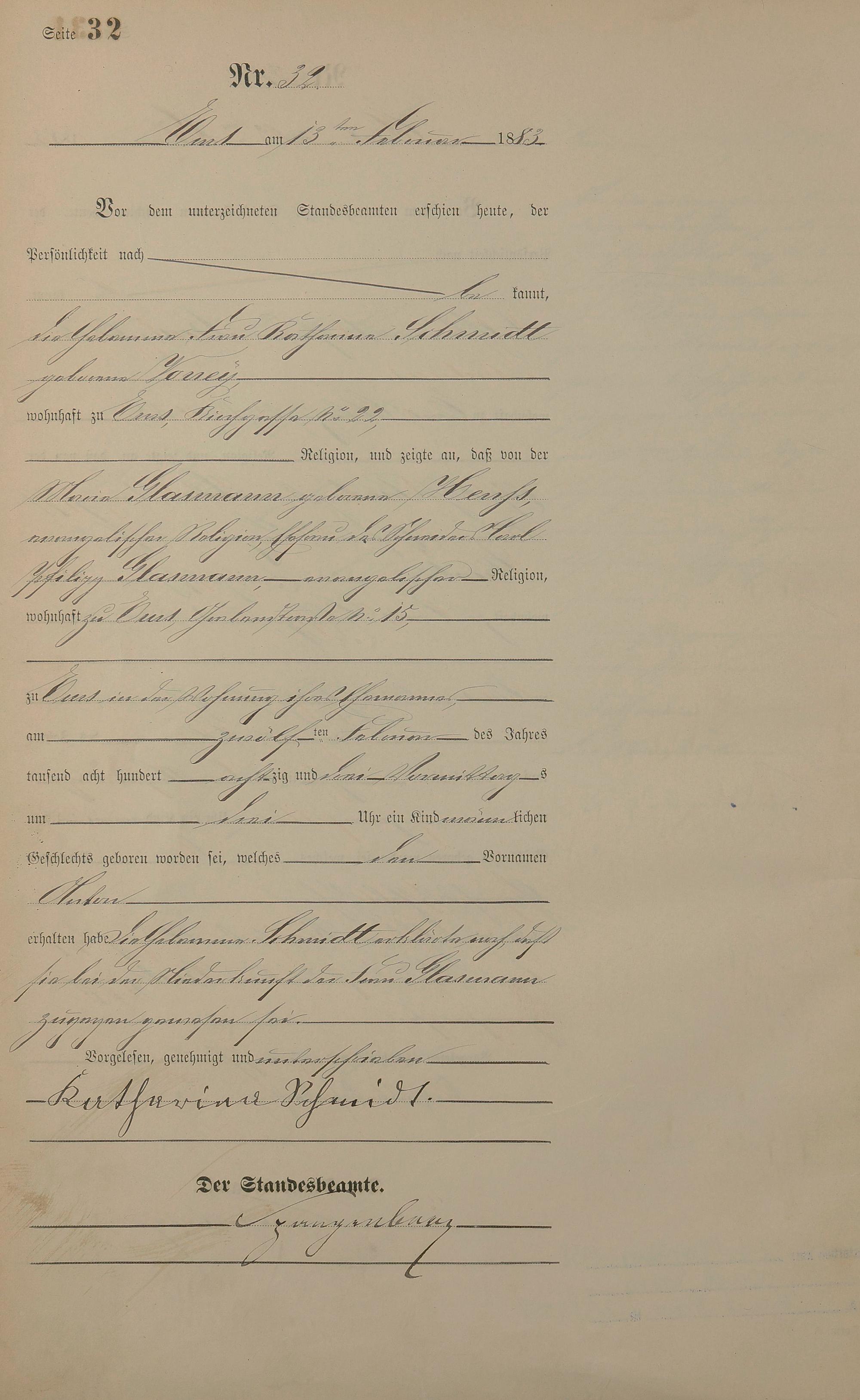 Geburtsregister 1883