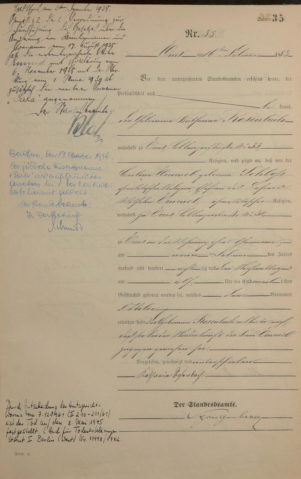 Geburtsregister 1883