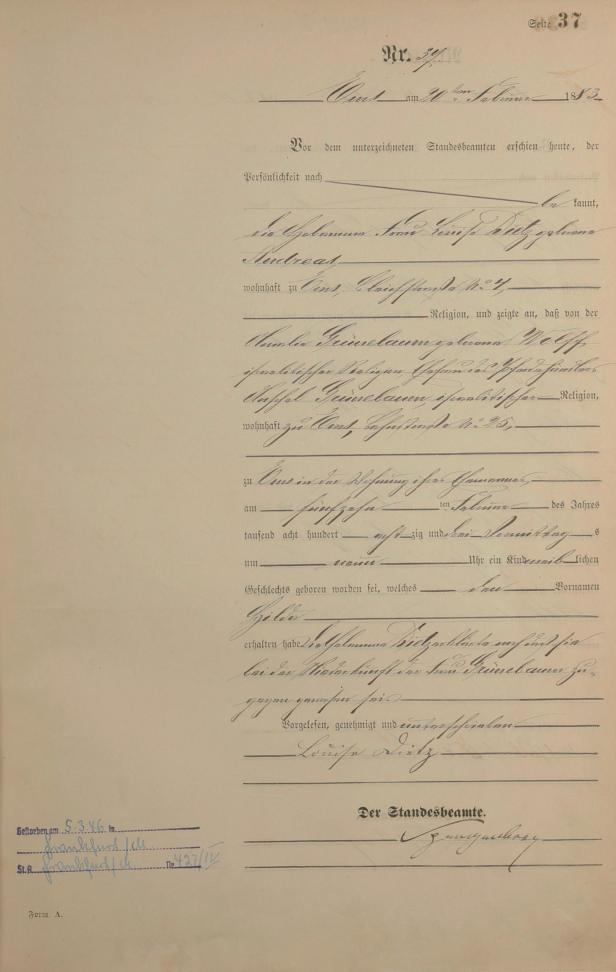 Geburtsregister 1883