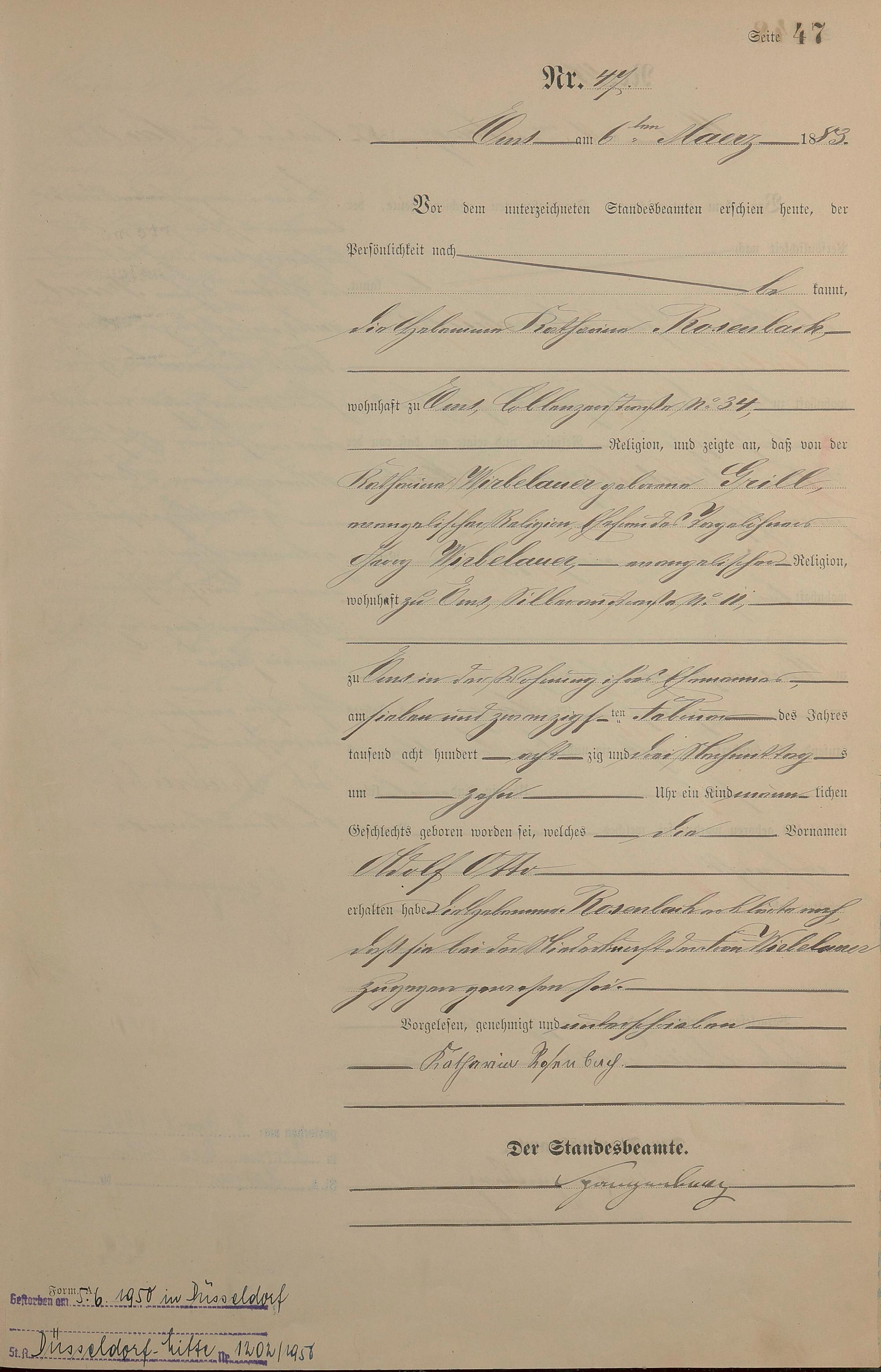 Geburtsregister 1883