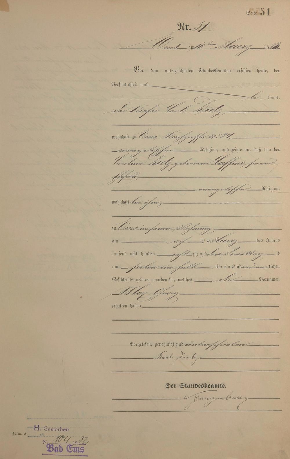Geburtsregister 1883