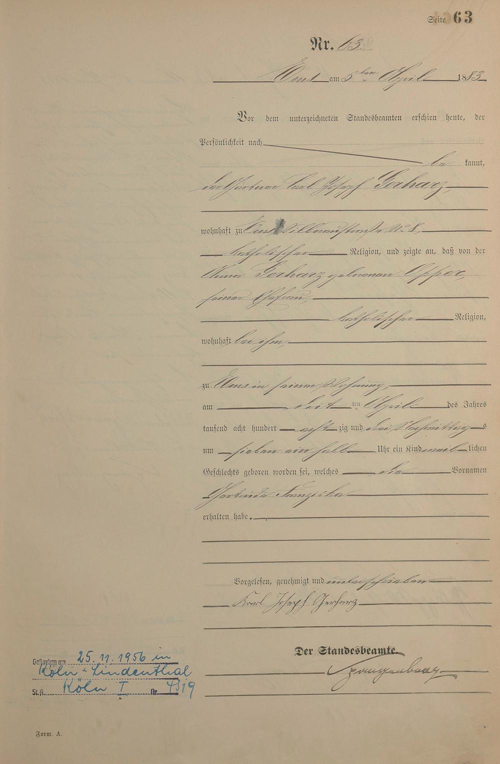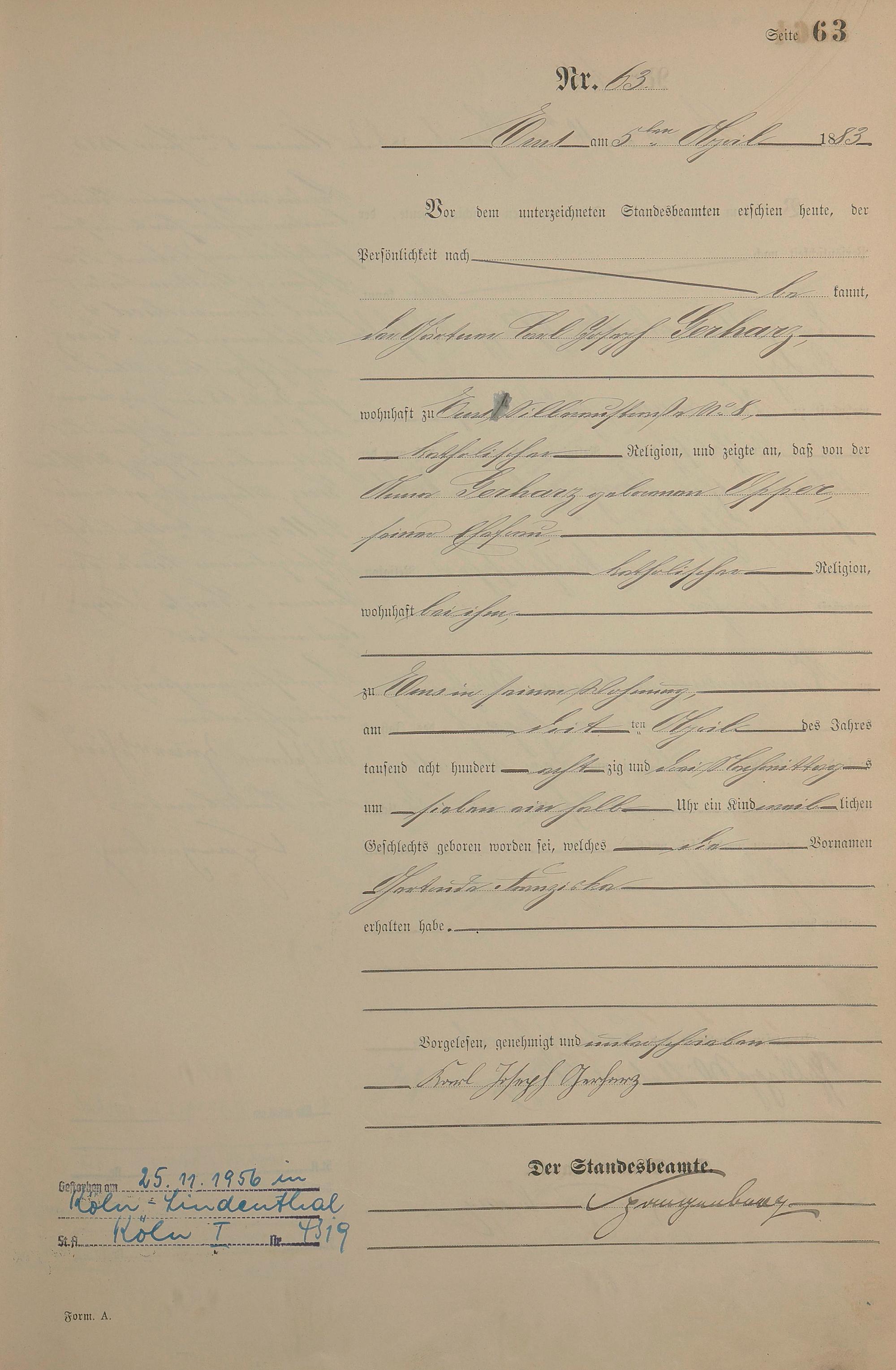 Geburtsregister 1883