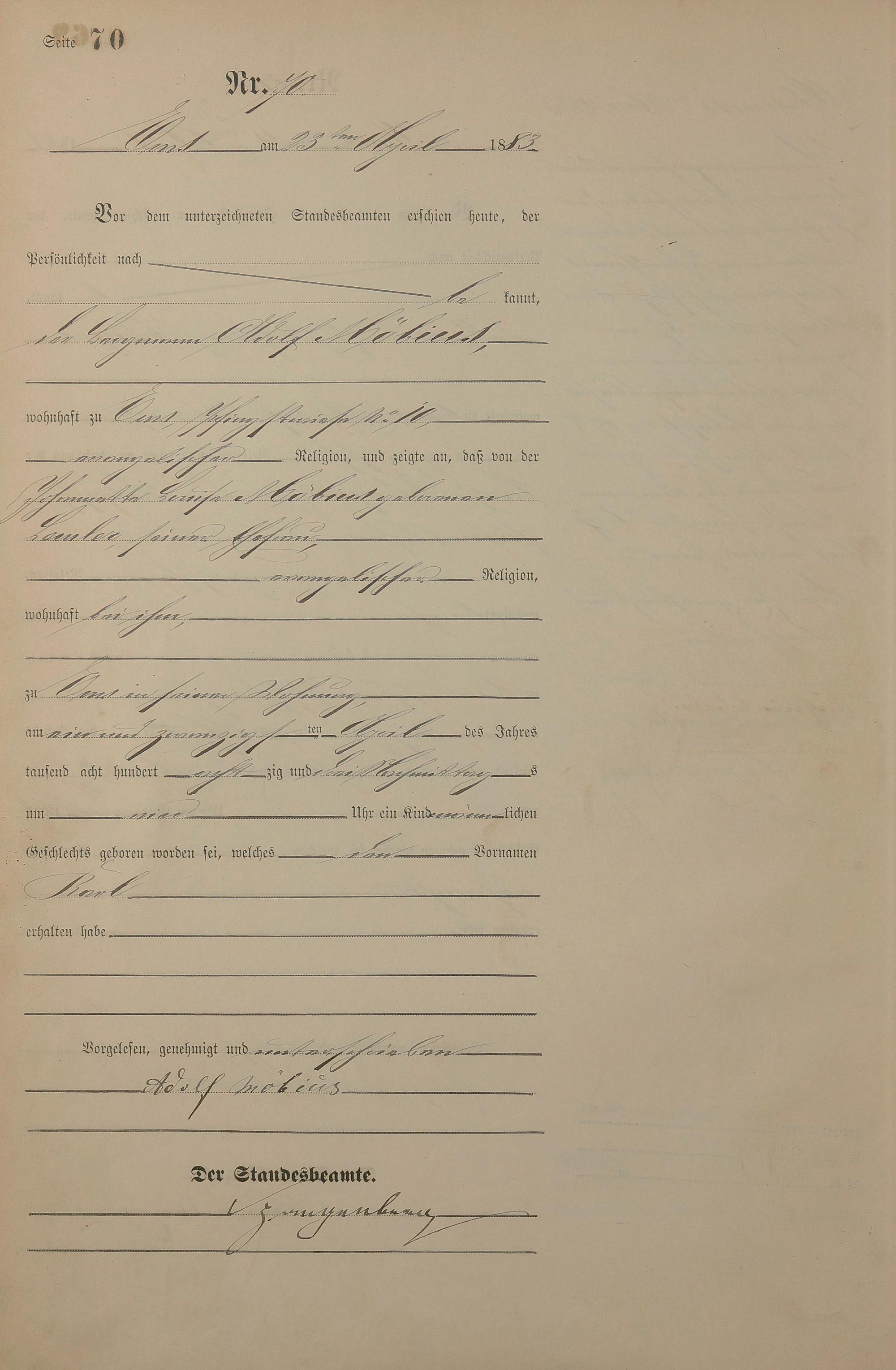 Geburtsregister 1883