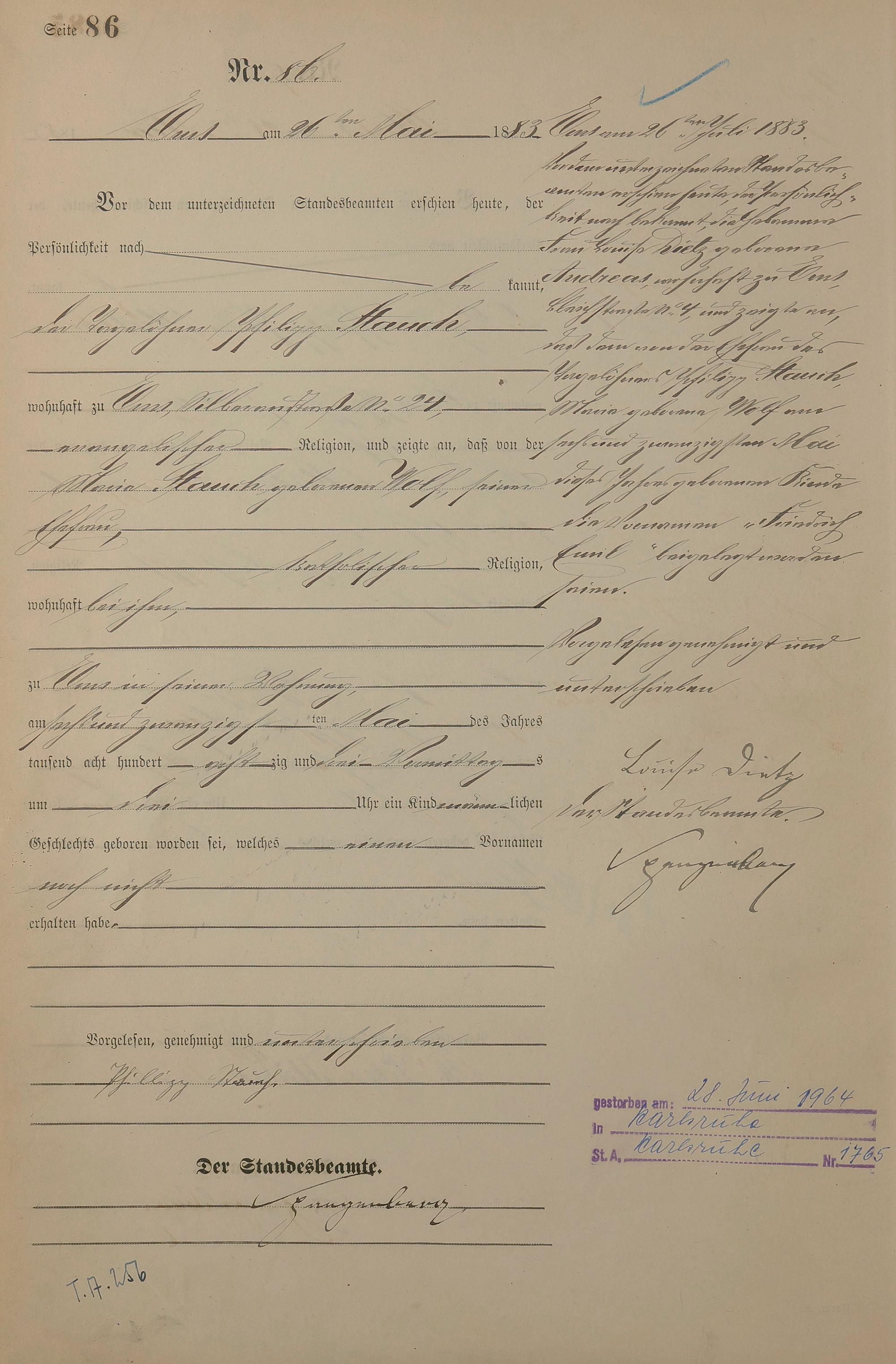 Geburtsregister 1883