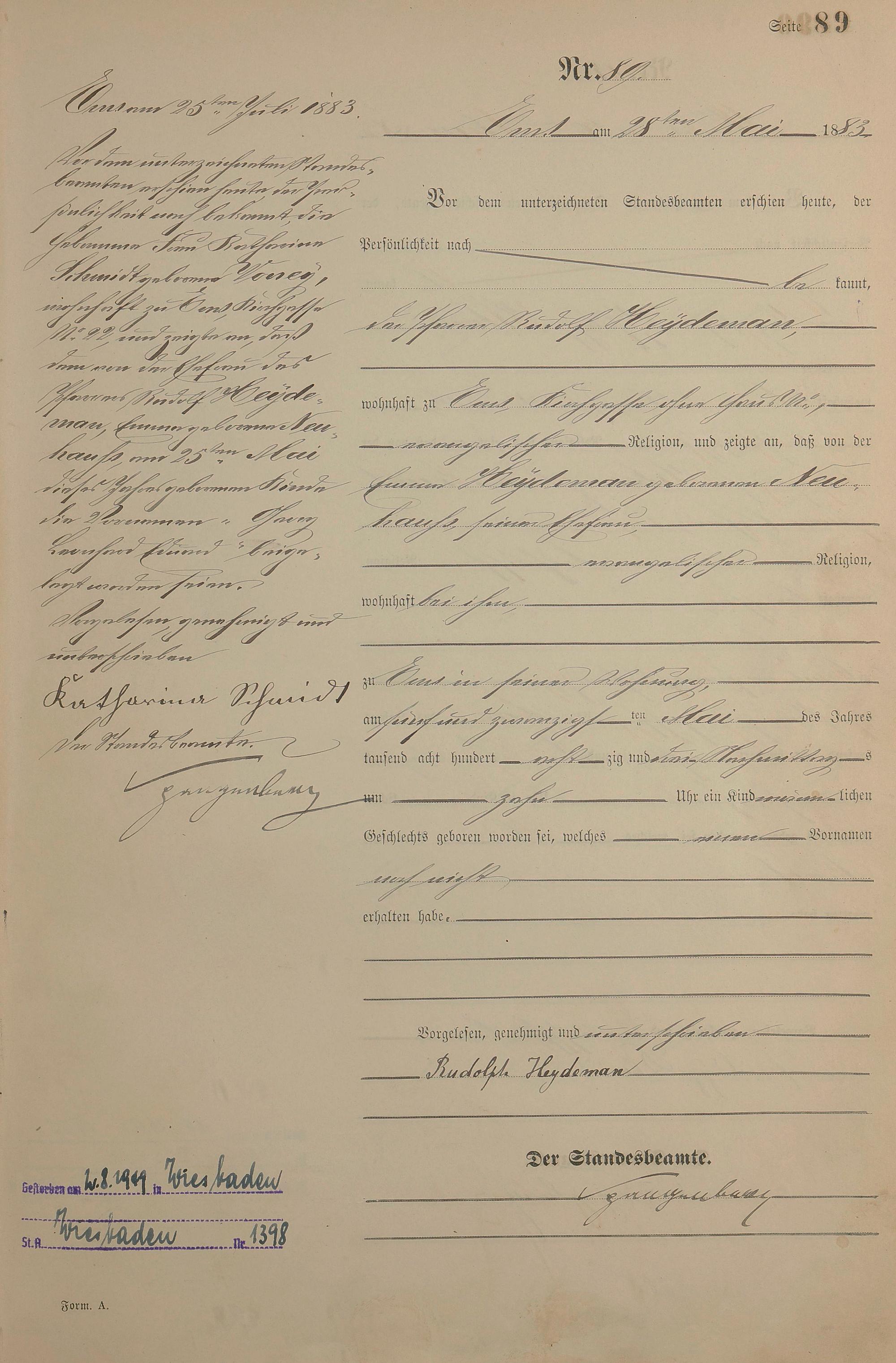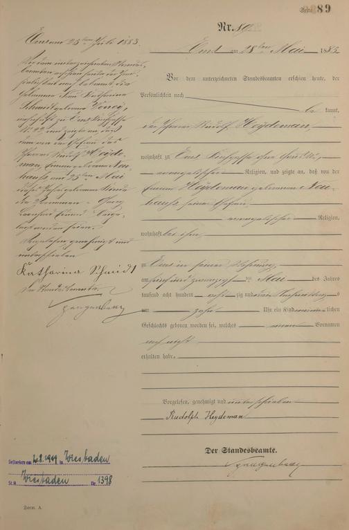 Geburtsregister 1883