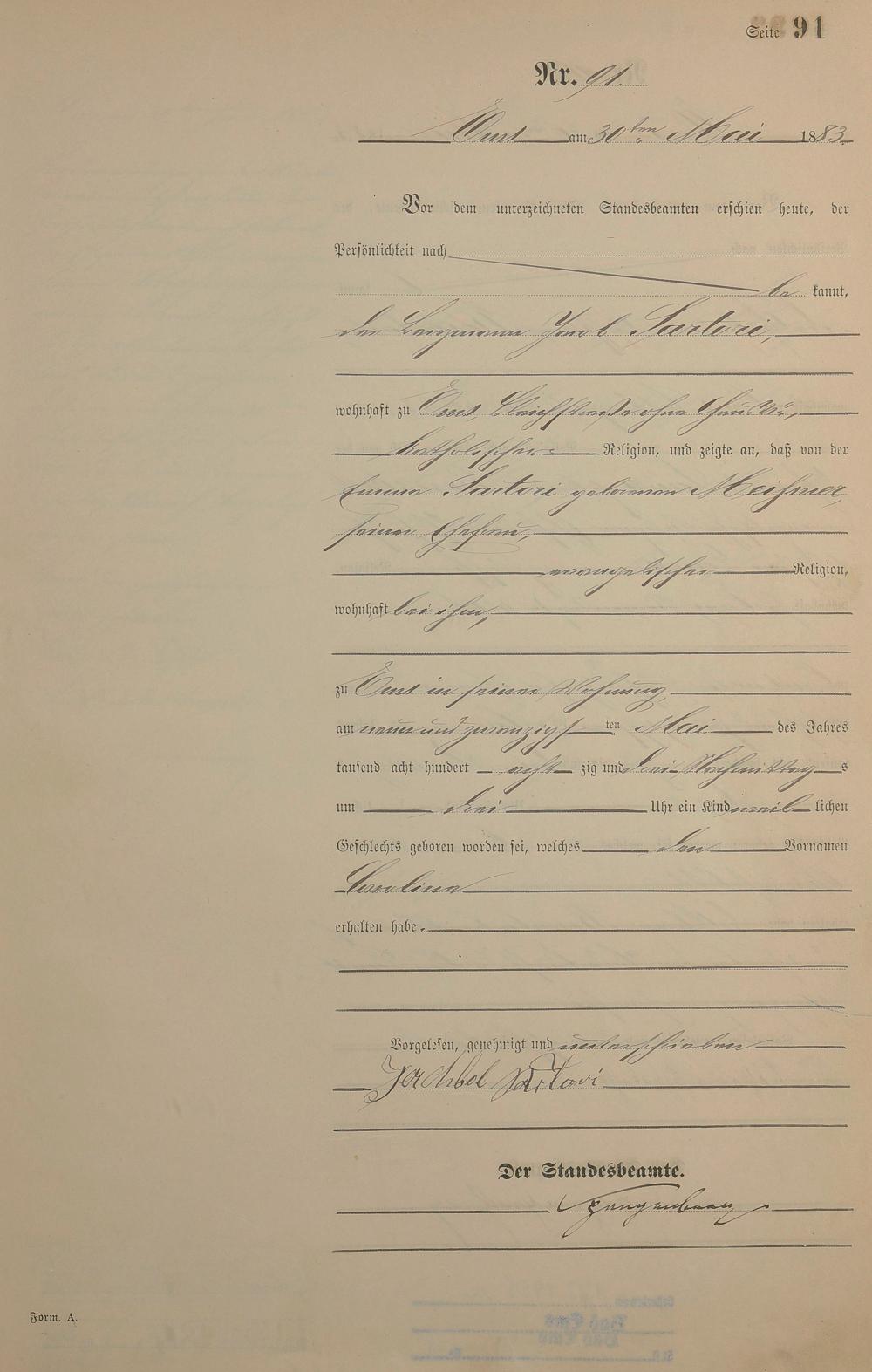 Geburtsregister 1883