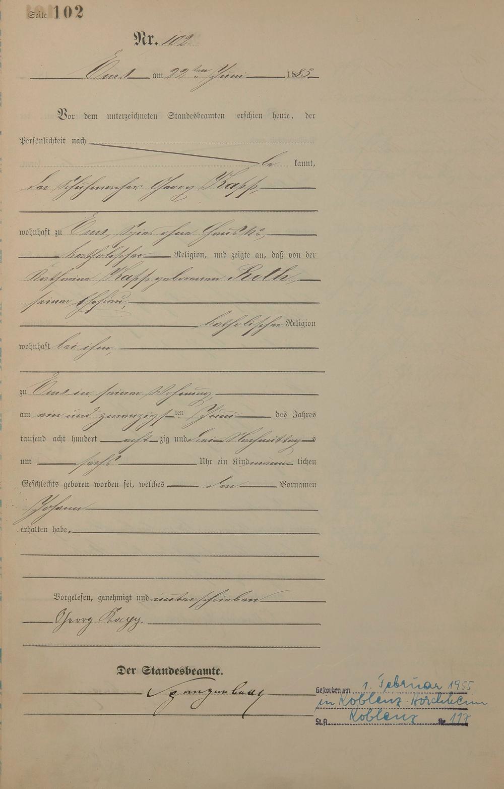 Geburtsregister 1883