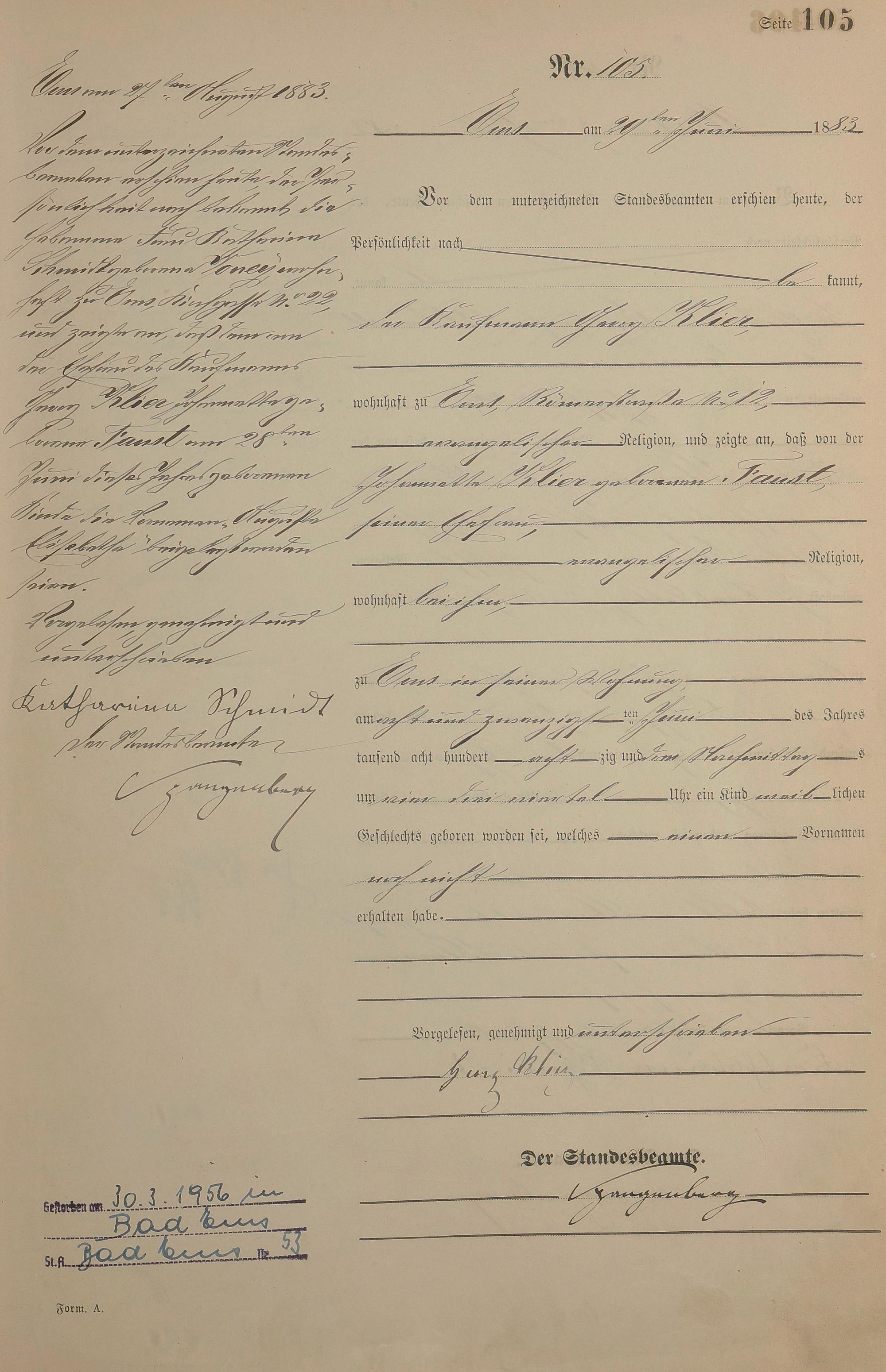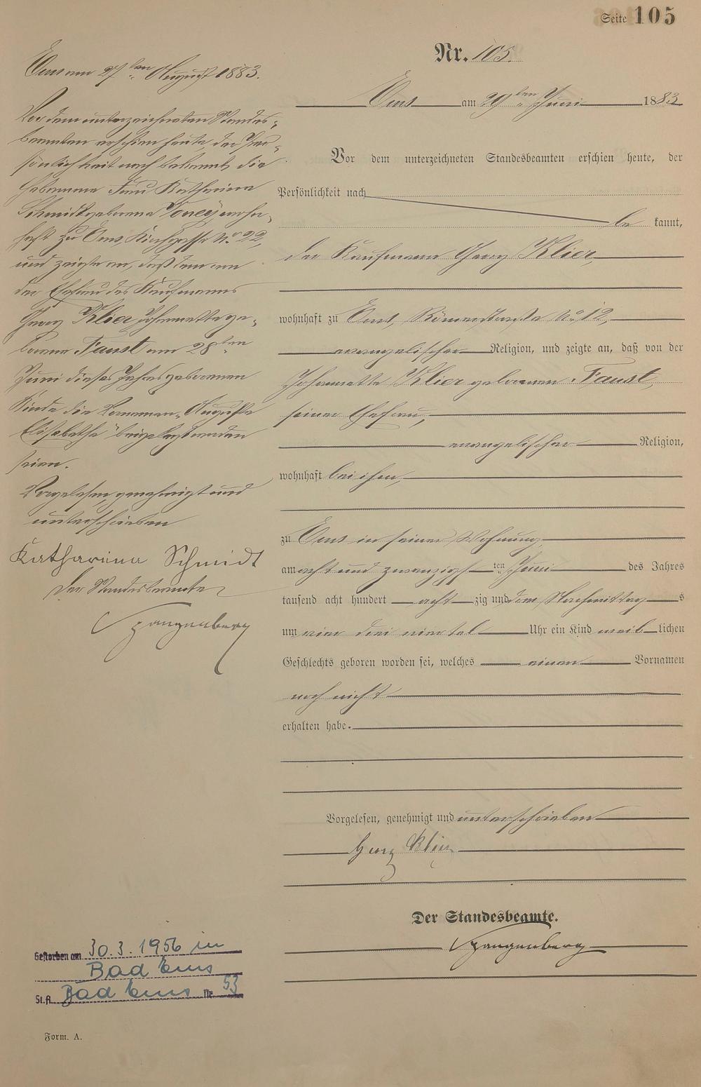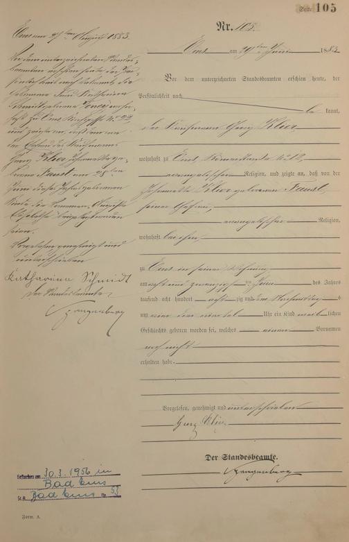 Geburtsregister 1883