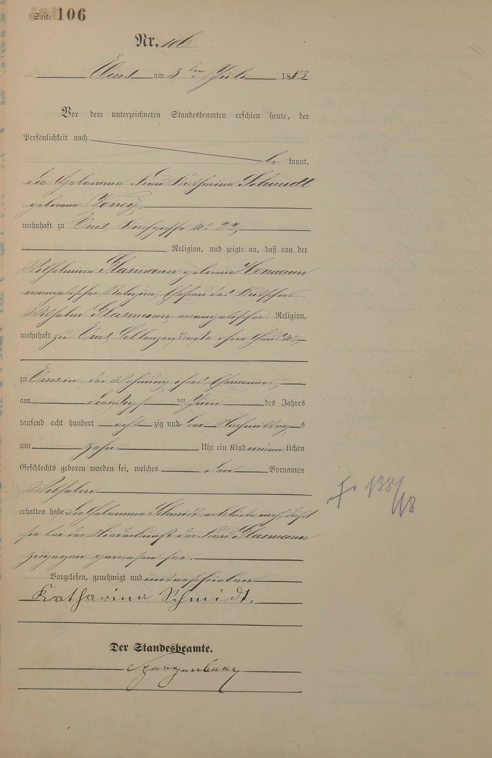 Geburtsregister 1883