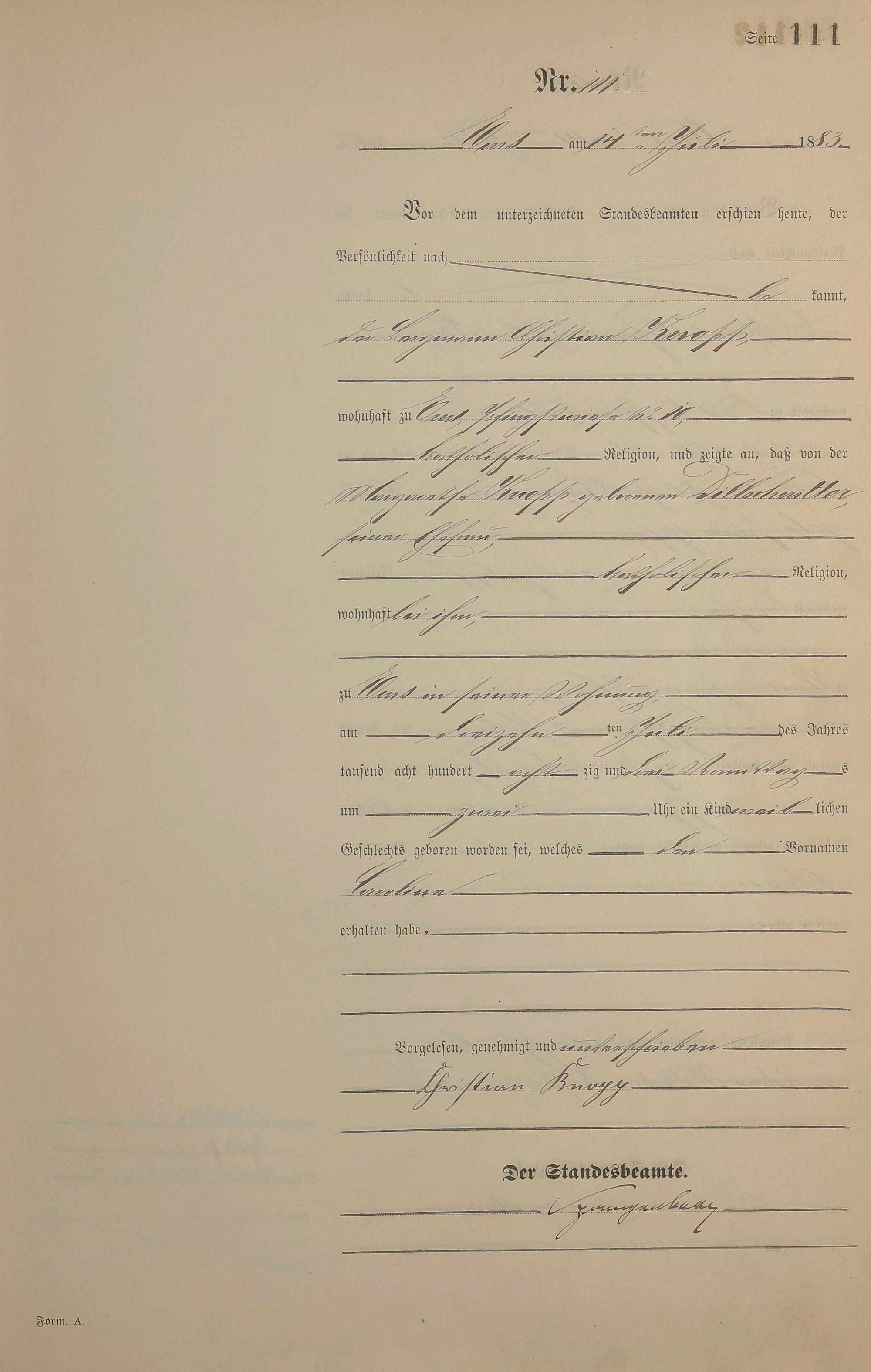 Geburtsregister 1883