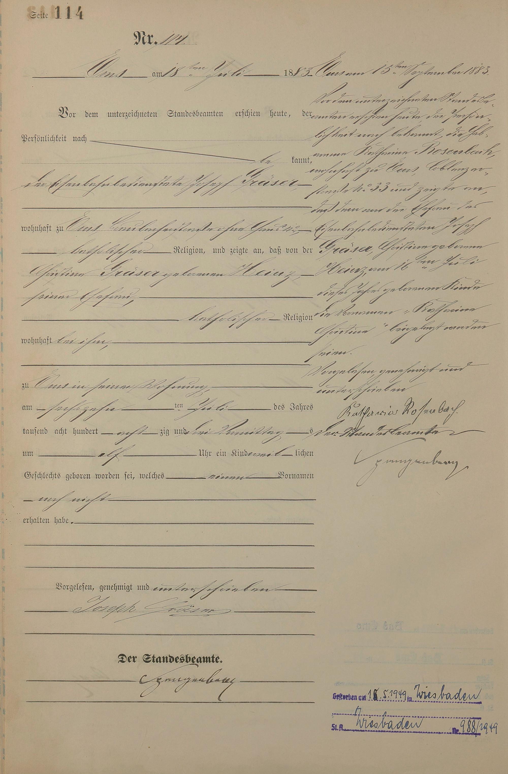 Geburtsregister 1883