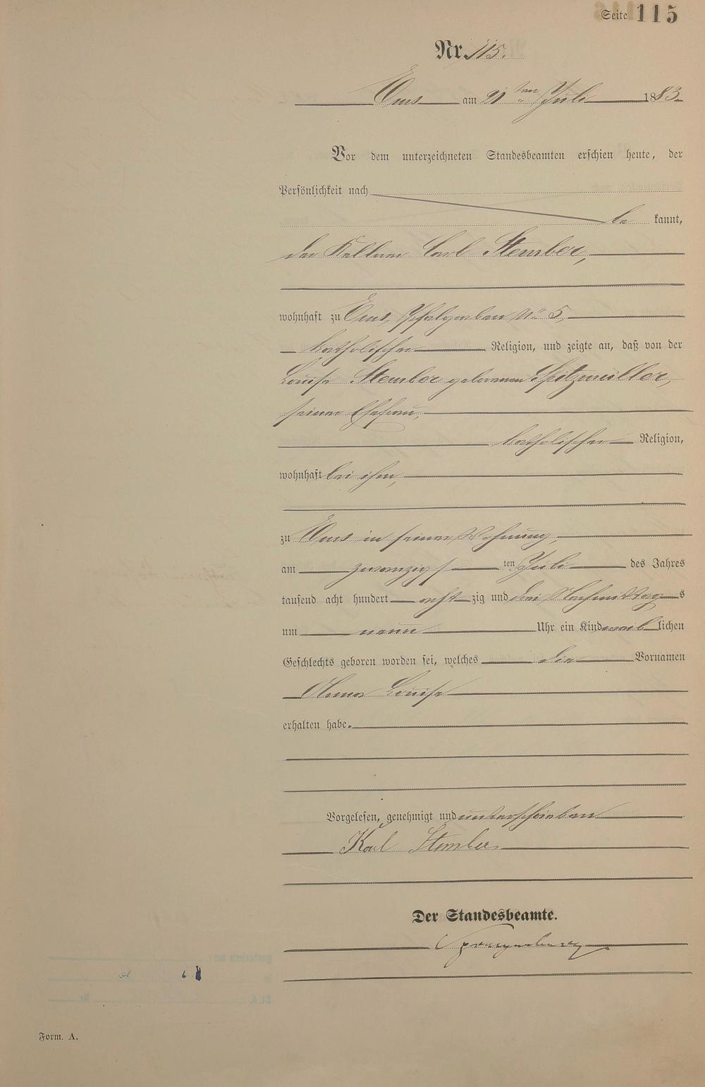 Geburtsregister 1883