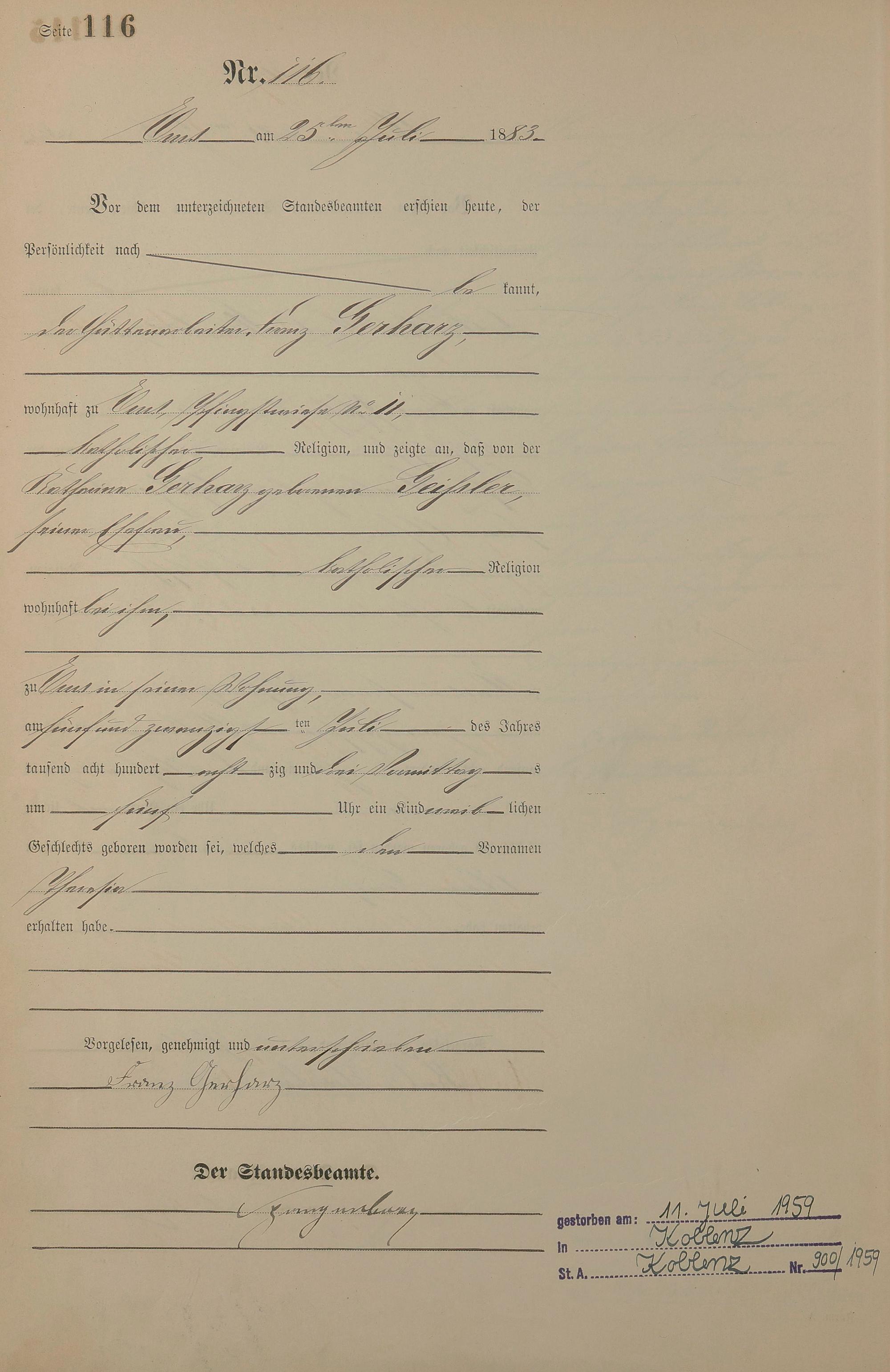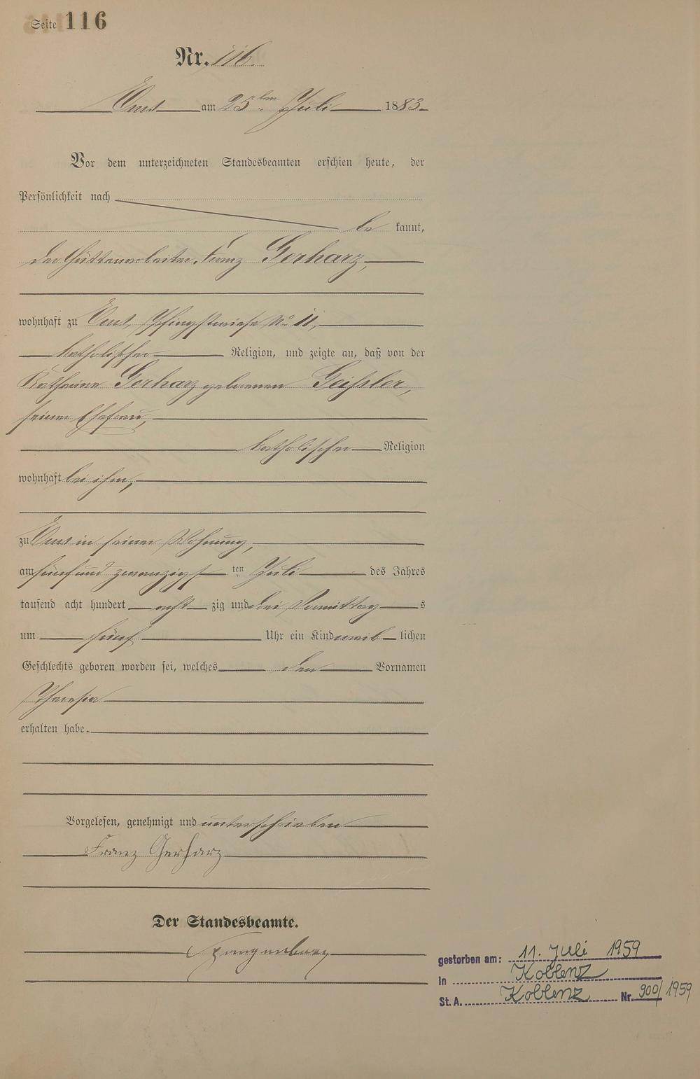 Geburtsregister 1883
