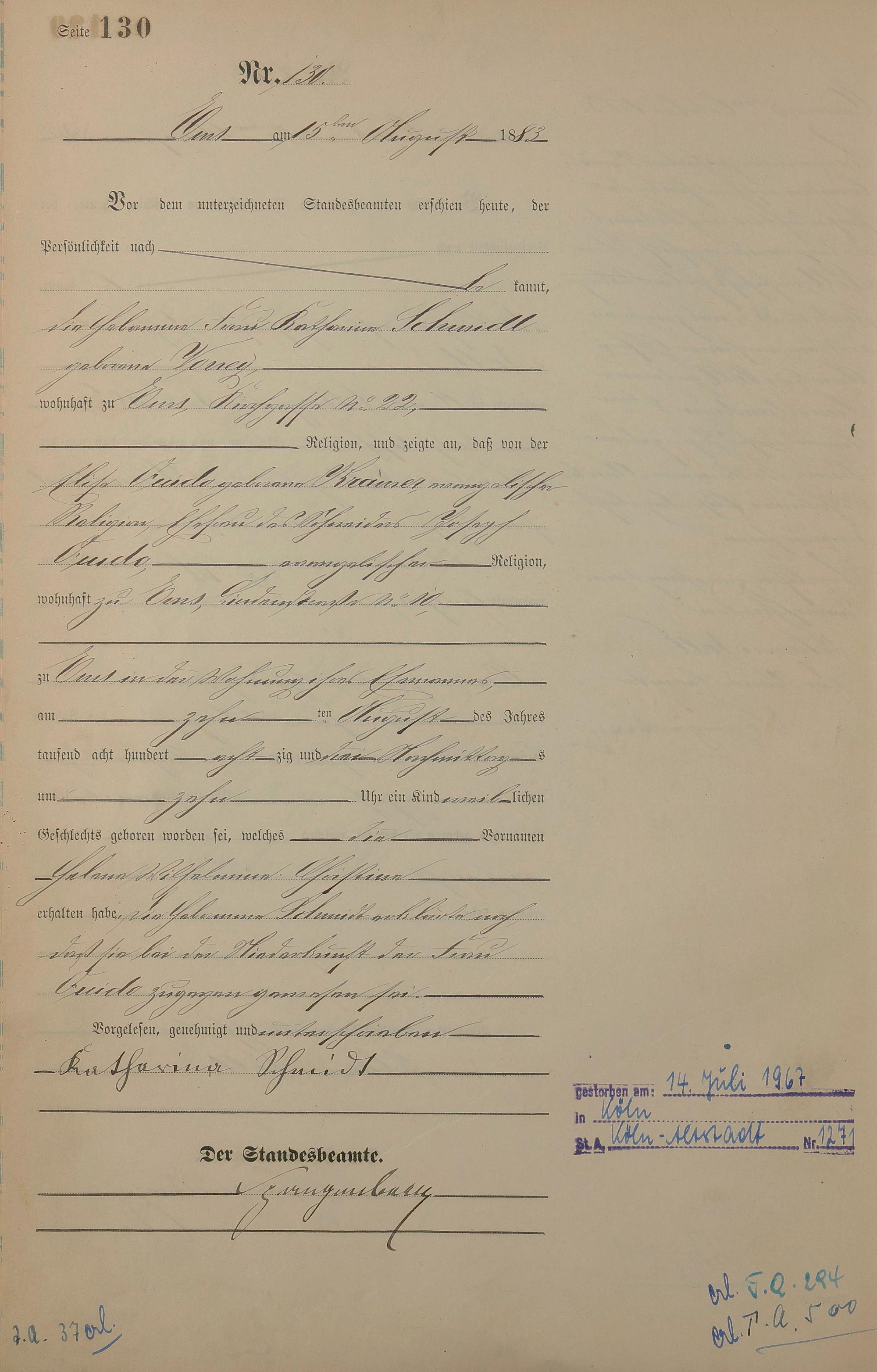 Geburtsregister 1883