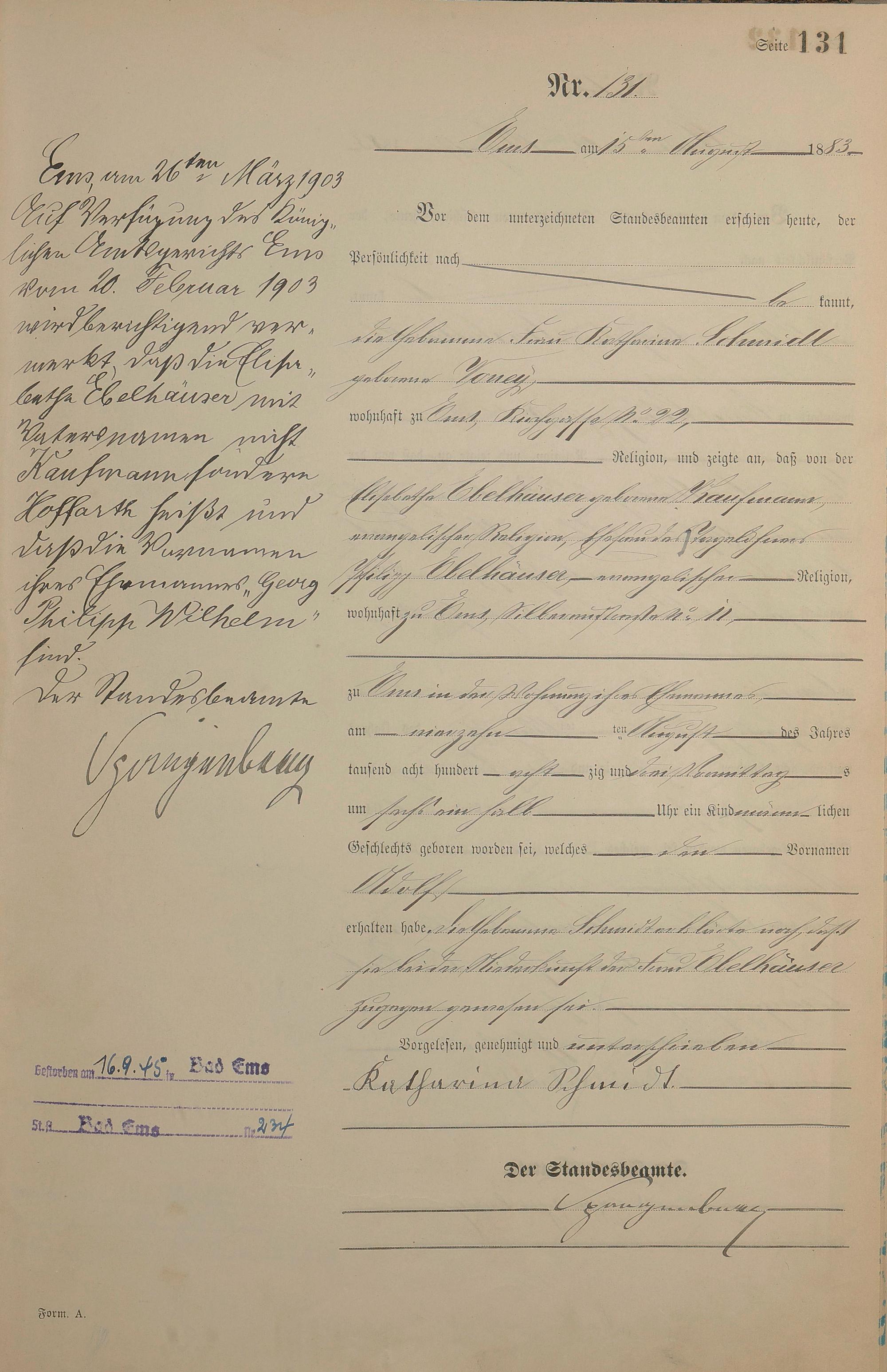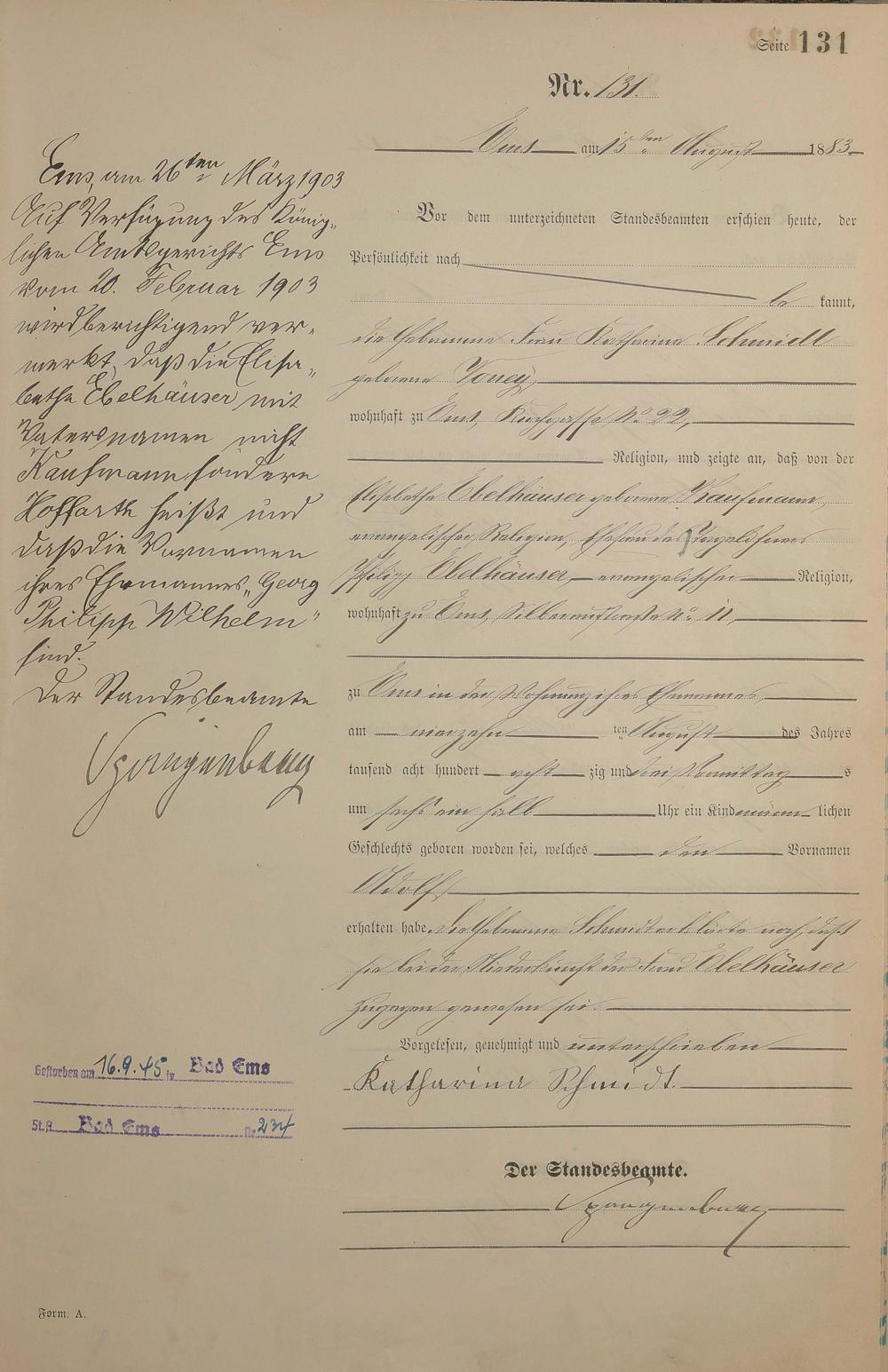 Geburtsregister 1883