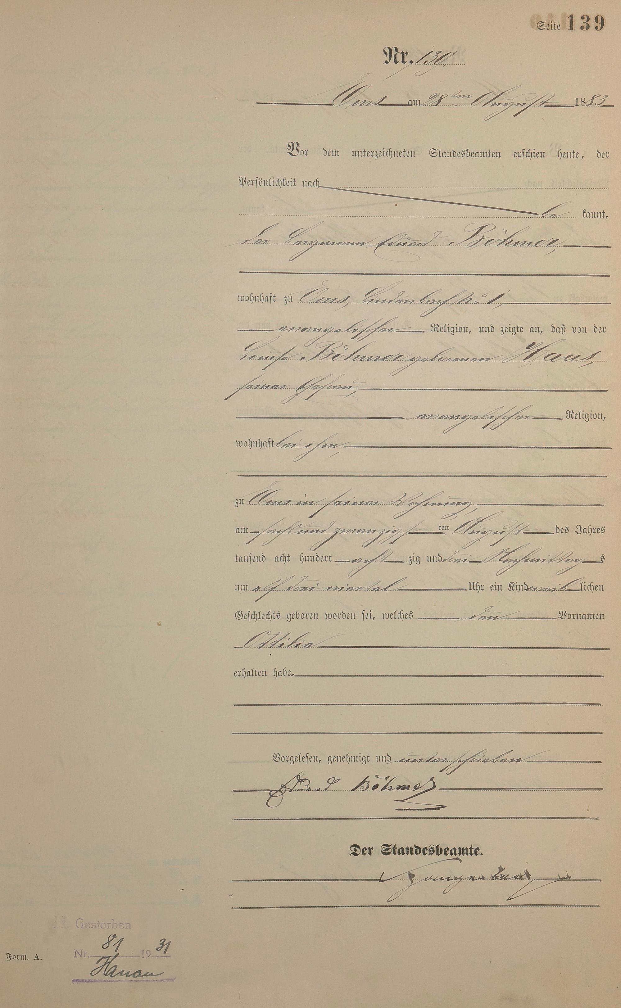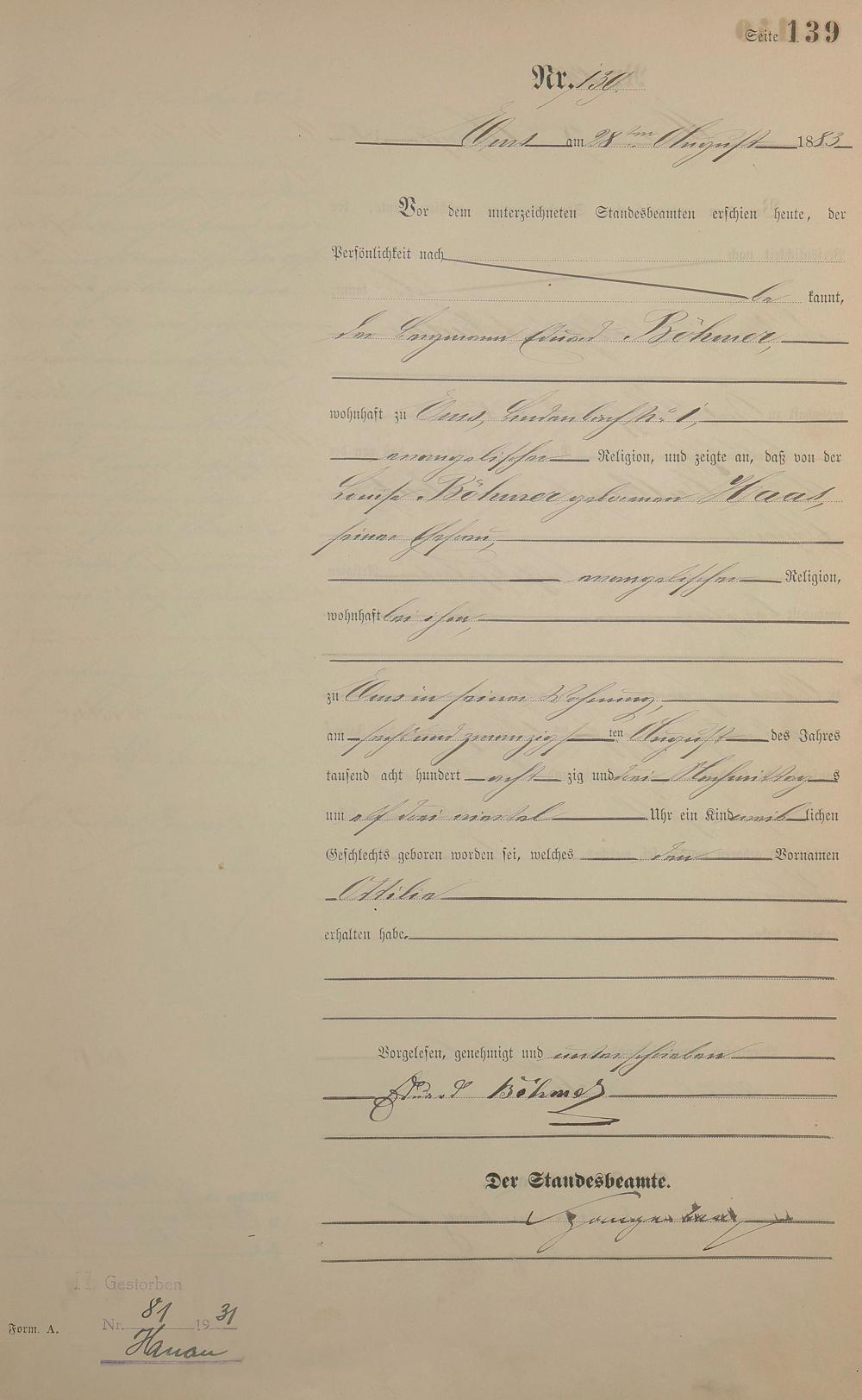 Geburtsregister 1883