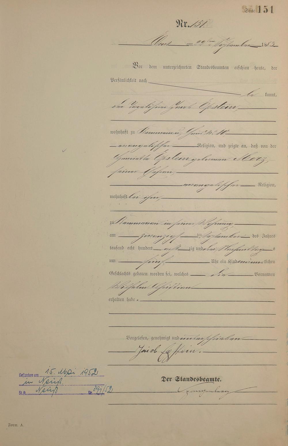 Geburtsregister 1883