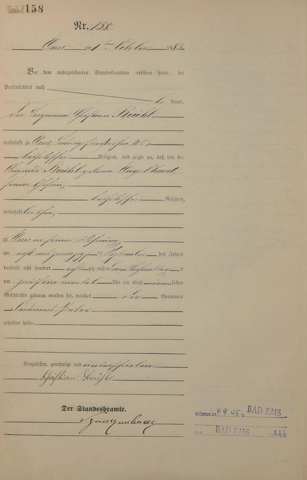 Geburtsregister 1883