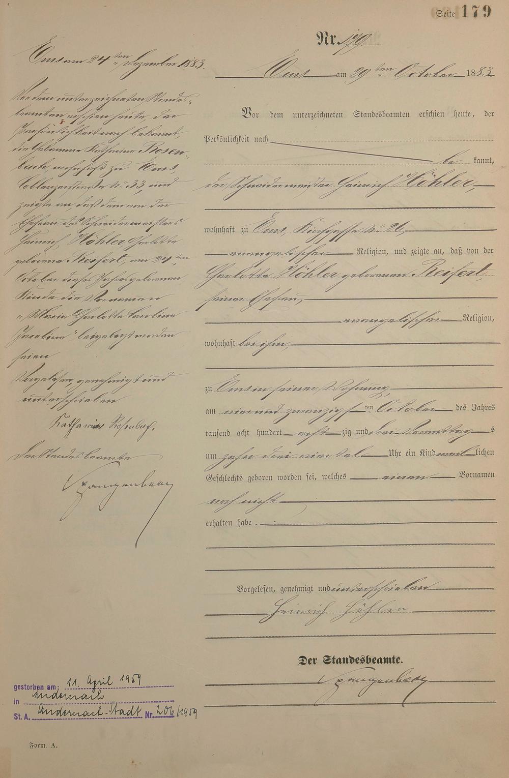 Geburtsregister 1883