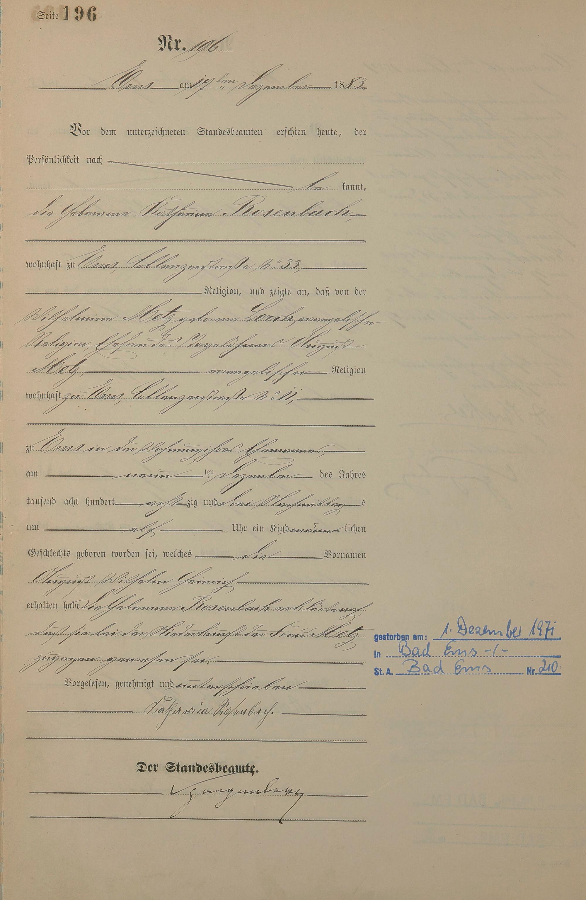 Geburtsregister 1883