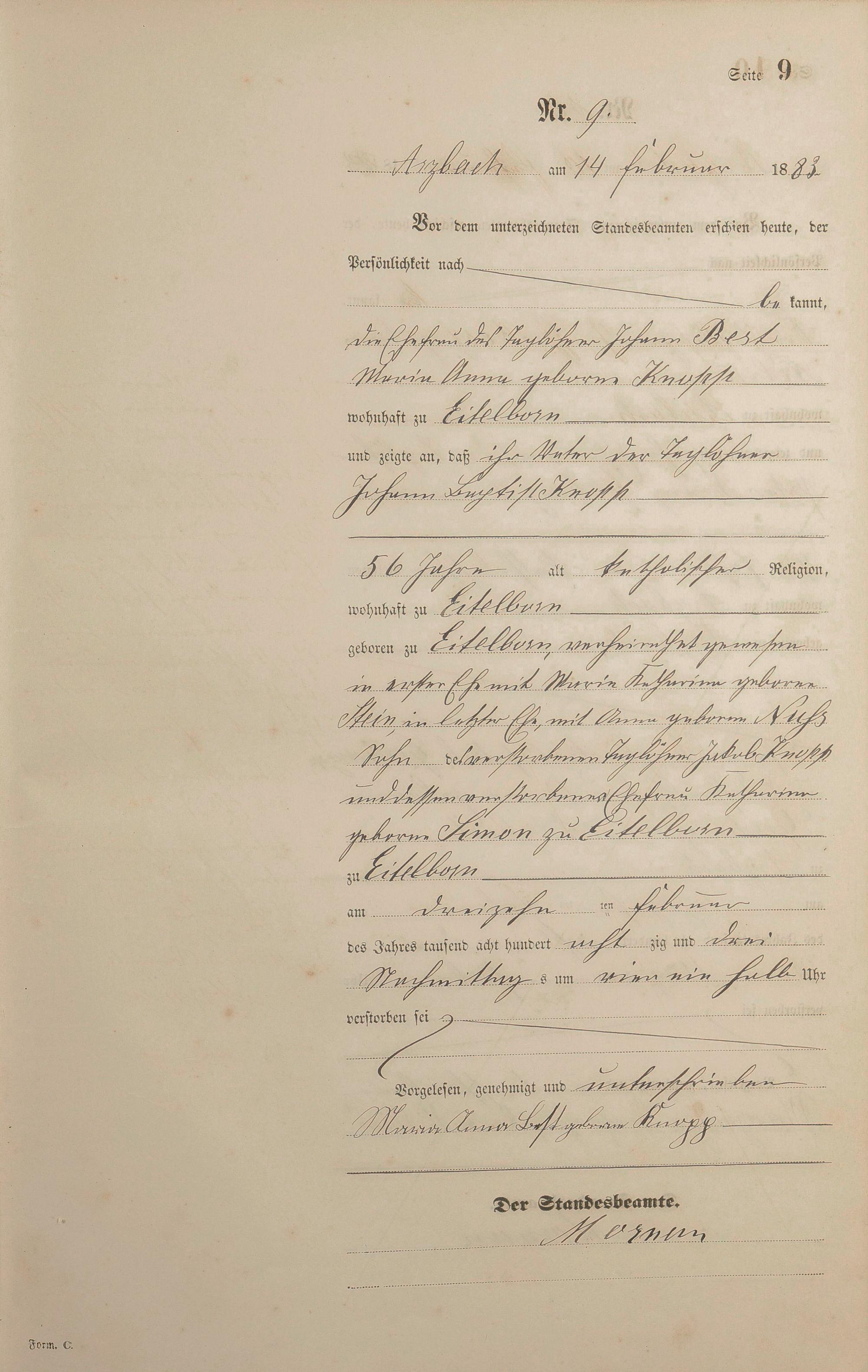 Sterberegister 1883
