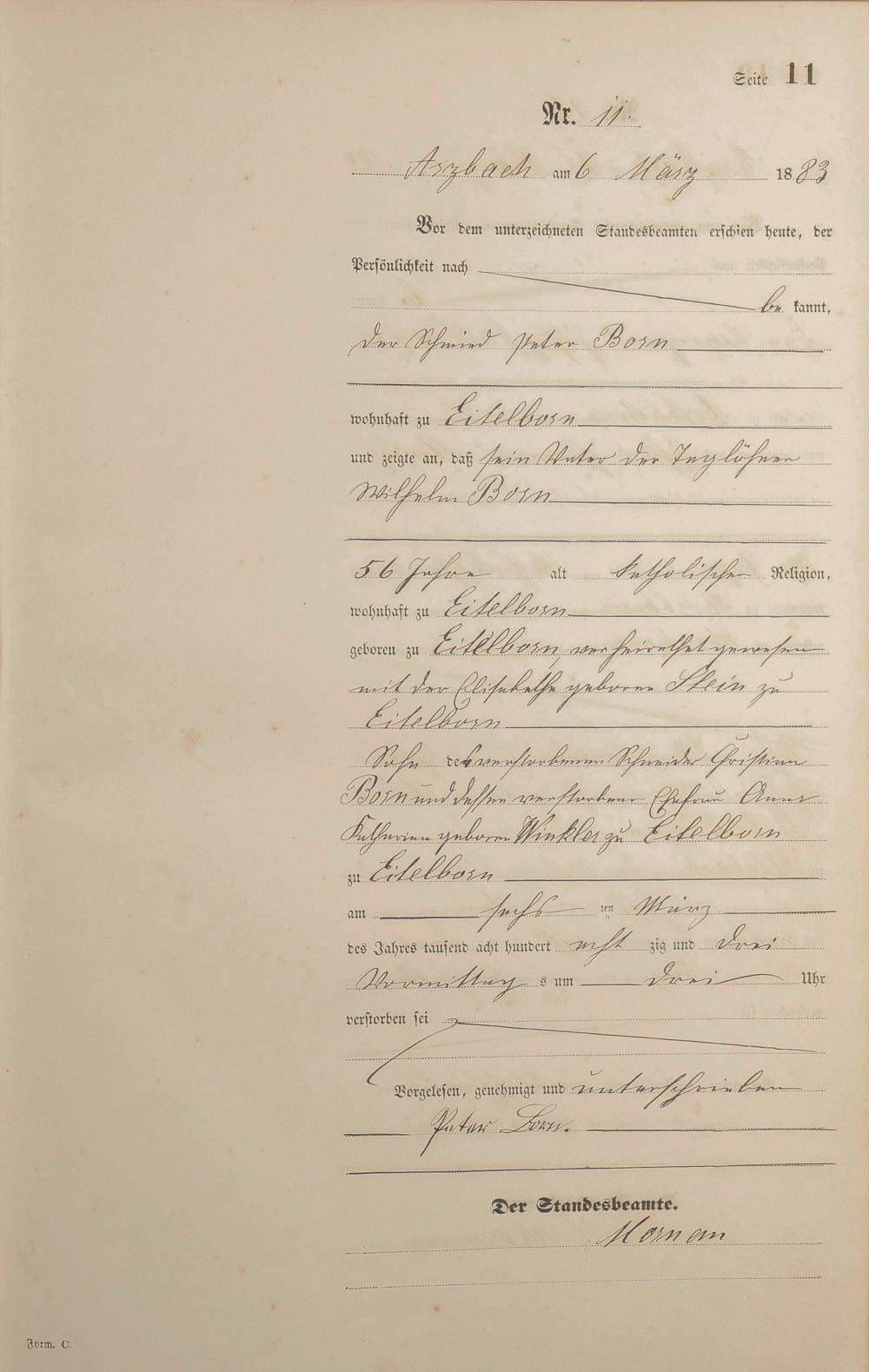 Sterberegister 1883