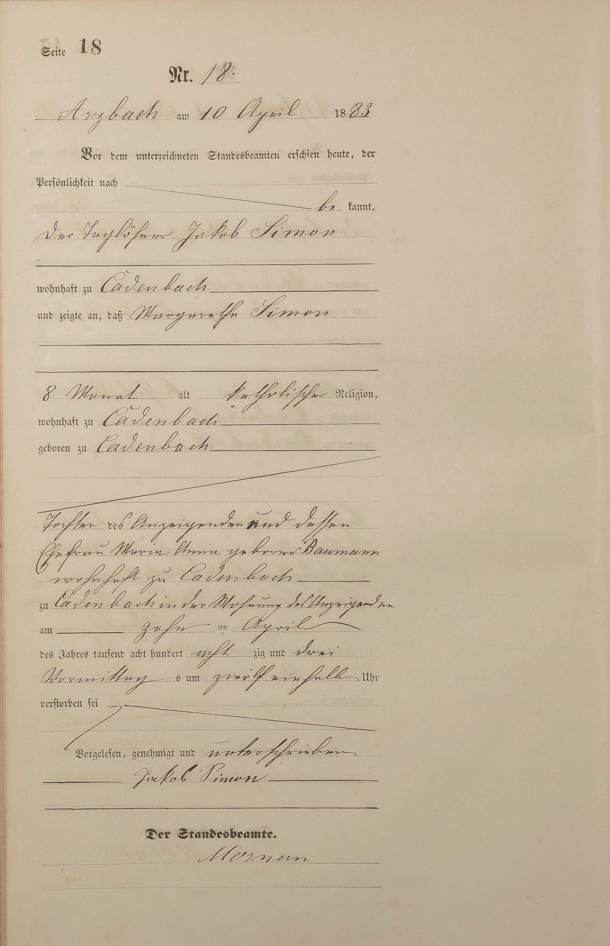 Sterberegister 1883