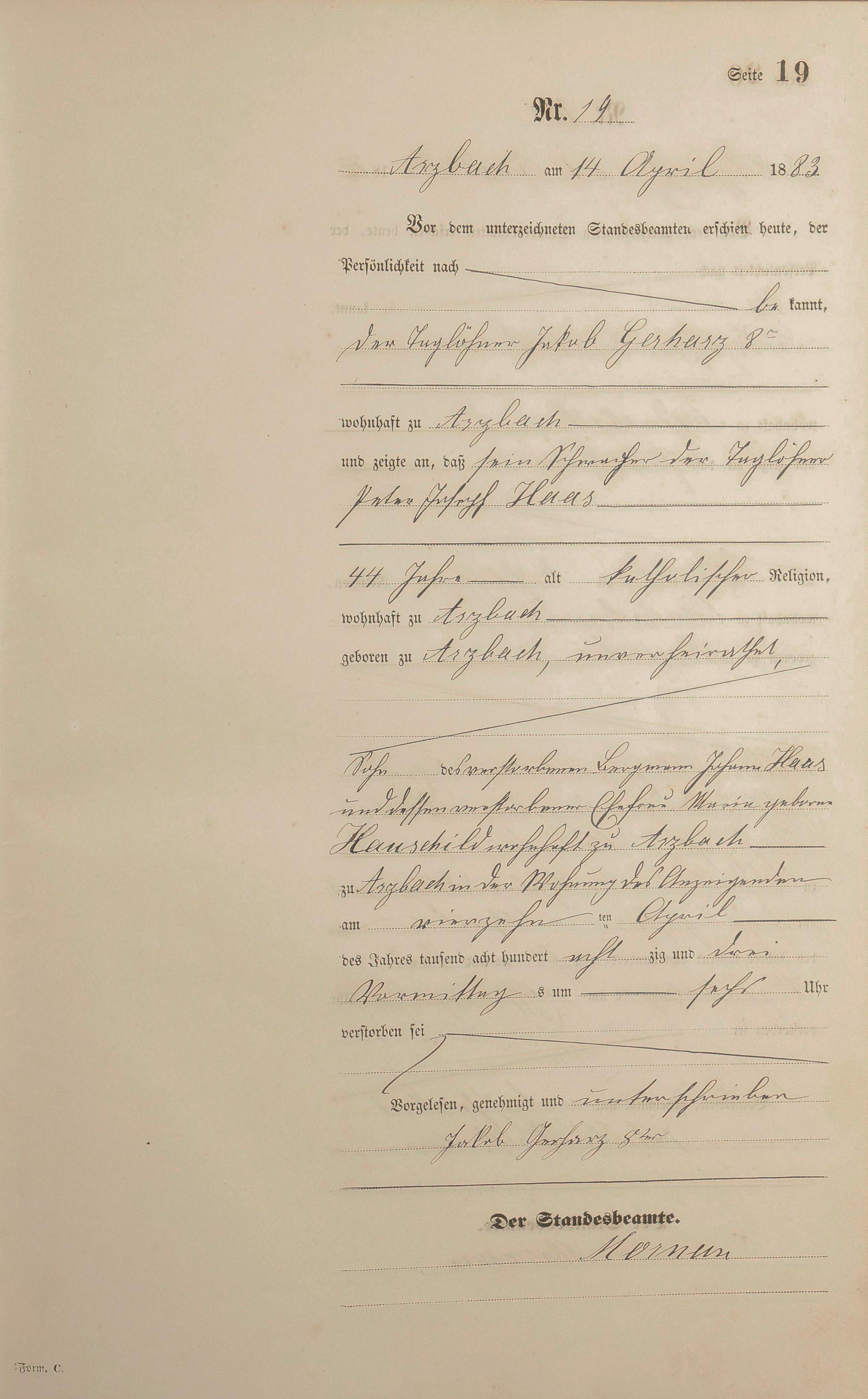 Sterberegister 1883
