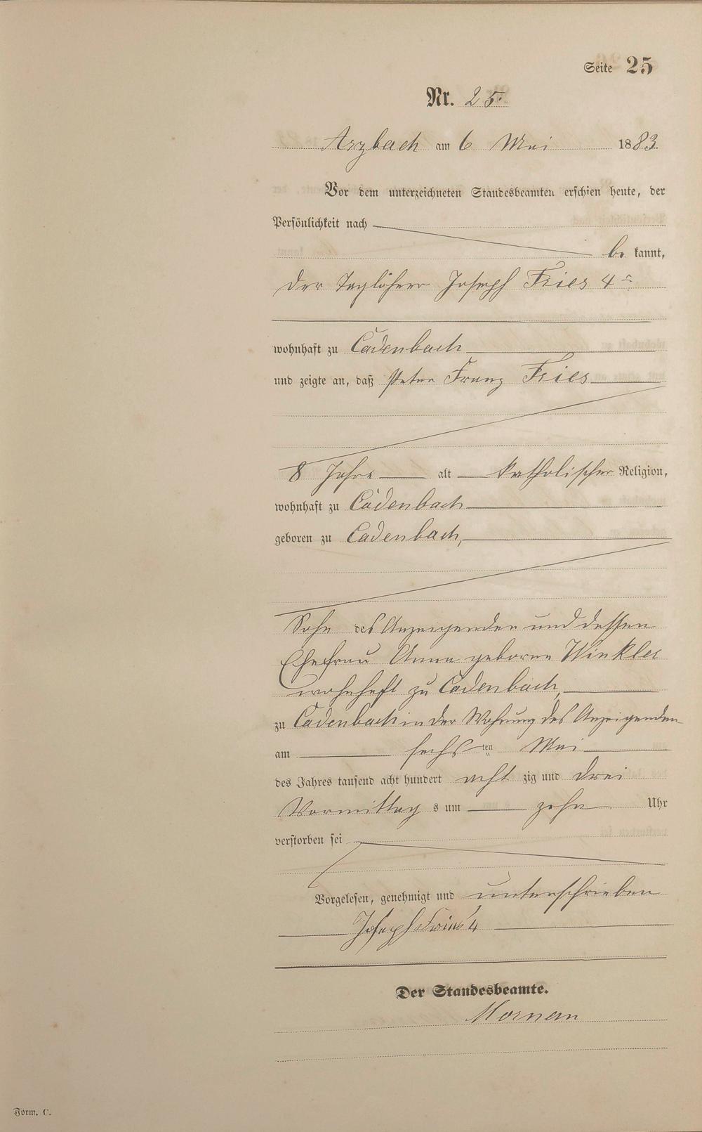 Sterberegister 1883
