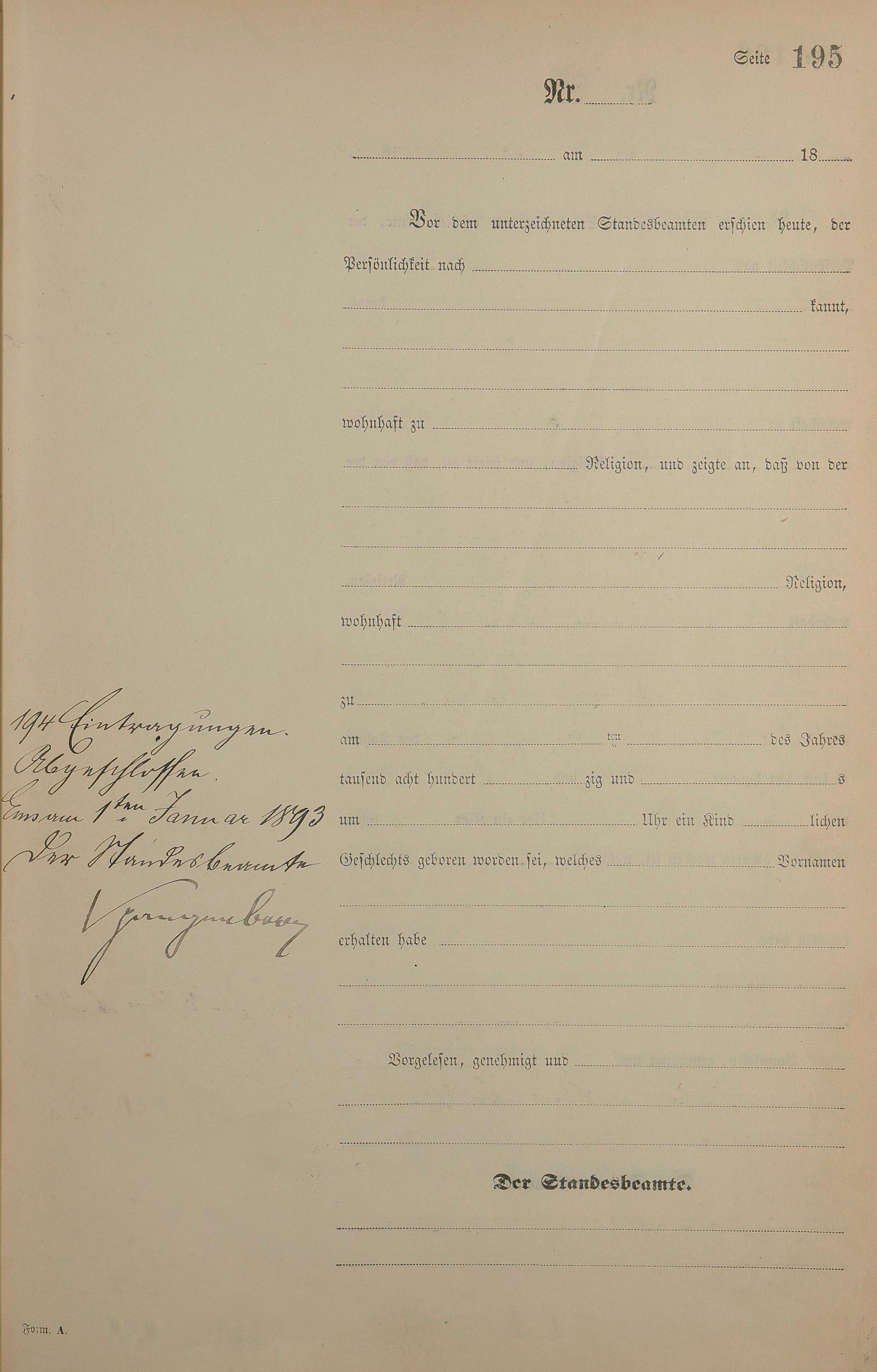 Geburtsregister 1892