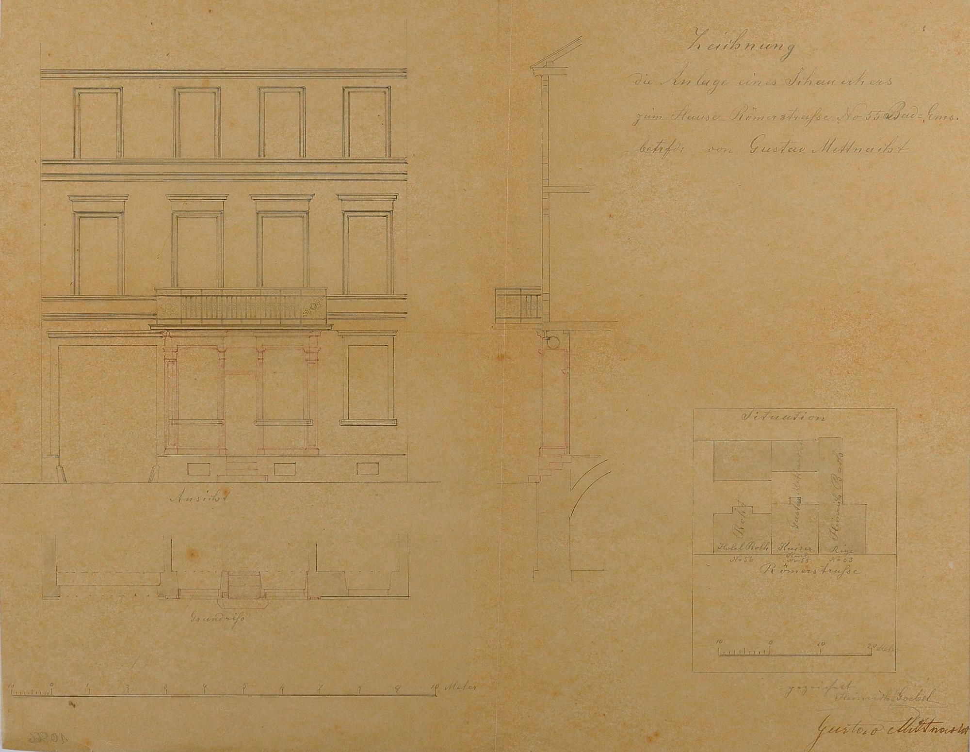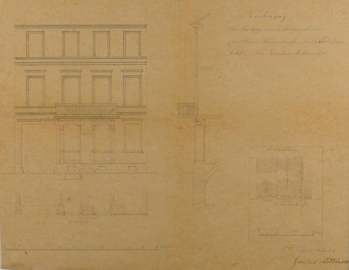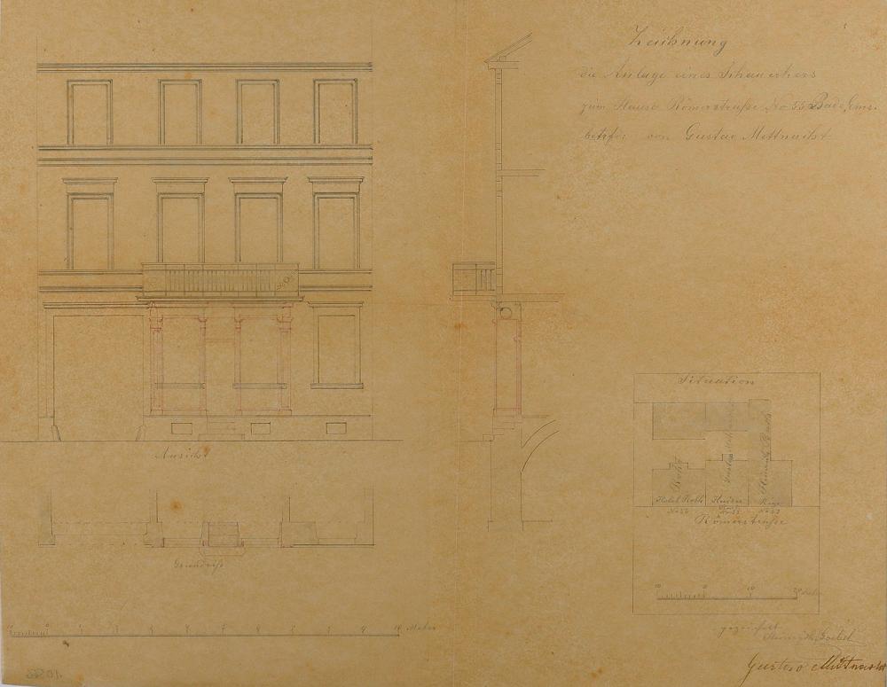 Schaufenster des Hauses "Kaiser Karl" des Katharina Lanio geb. Linkenbach/Lehrer Acht/Dr. Bertold Flothmann/Simon Josef Schmitz und Maria Ursula geb. Spicker/Wilhelm Ehard und Lina geb. Biermas/Kurt Lemler Bad Ems Römerstraße Nr 50 (48, 55) Flur 92 Nr. 15/2 - Ansicht, Schnitt, Grundriss und Lagplan