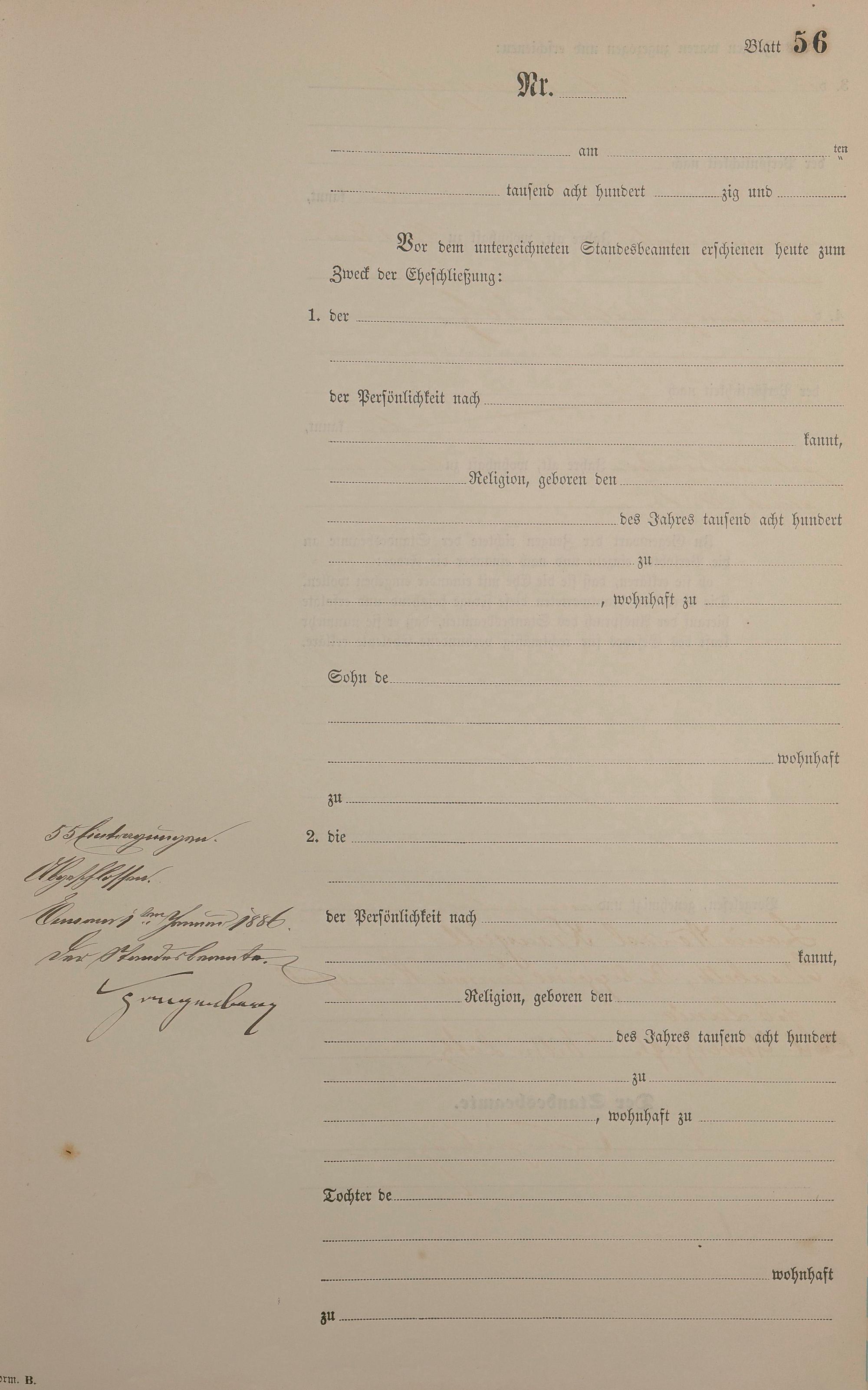 Heiratsregister 1885
