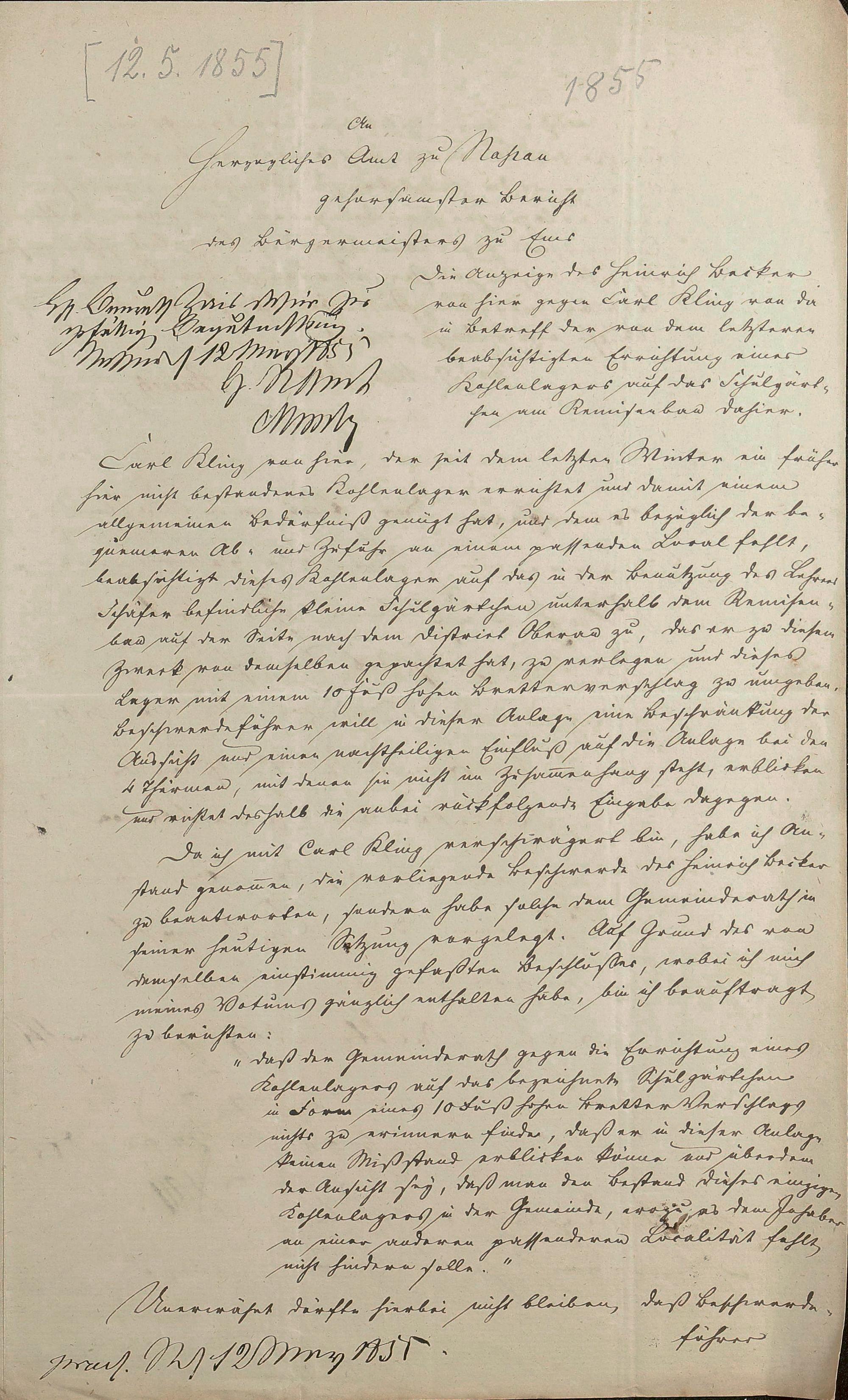 Kohlelager für Carl Kling am Schulhaus der Gemeinde Bad Ems Bad Ems Römerstraße Nr. 97/Rathausstraße Nr. 1 Flur 92 Nr. 44/2