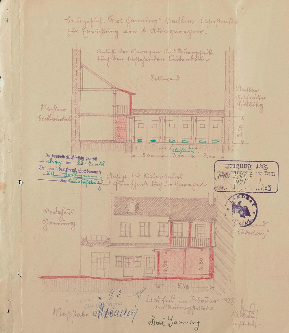 Garagen des Hauses "Ludwigsburg"/"Diamant" des Karl Ganning und Philippine Therese Karoline geb. Eichholz/Käthe Ganning/Liselotte Yacoub Bad Ems Adolf-Hitler-Straße Nr. 29/Lahnstraße Nr. 29 (26) Flur 84 Nr. 52 - Schnitte