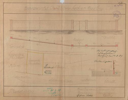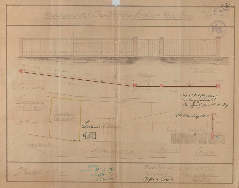 Einfriedung des Lagerplatzes des Christian Secker Bad Ems Koblenzer Straße Nr. Flur Nr. - Ansicht, Schnitt, Grundriss und Lageplan