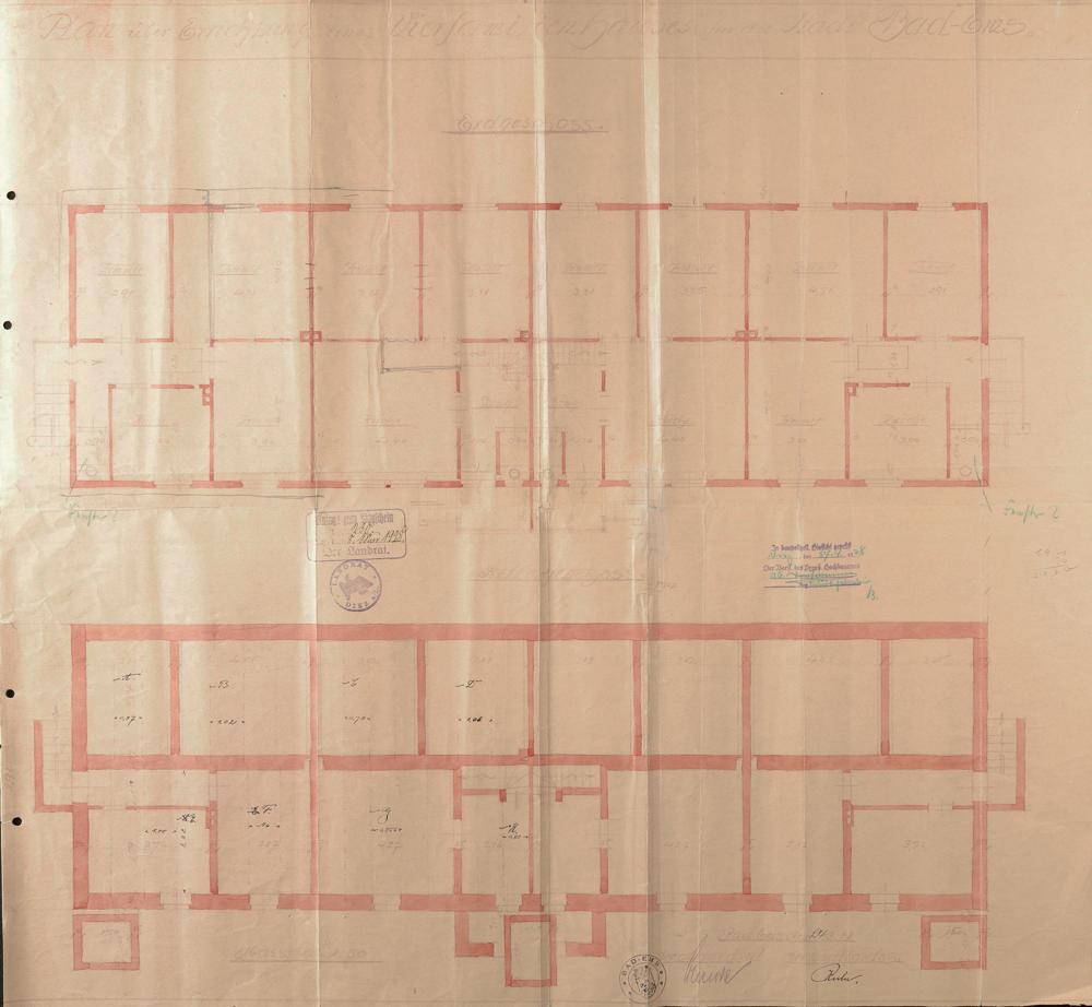 Vierfamilienwohnhaus der Stadt Bad Ems Bad Ems Große Wiese Nr. 12 und 13 Flur ? Nr. 155 und 157 (197/47) - Grundrisse Keller und Erdgeschoss