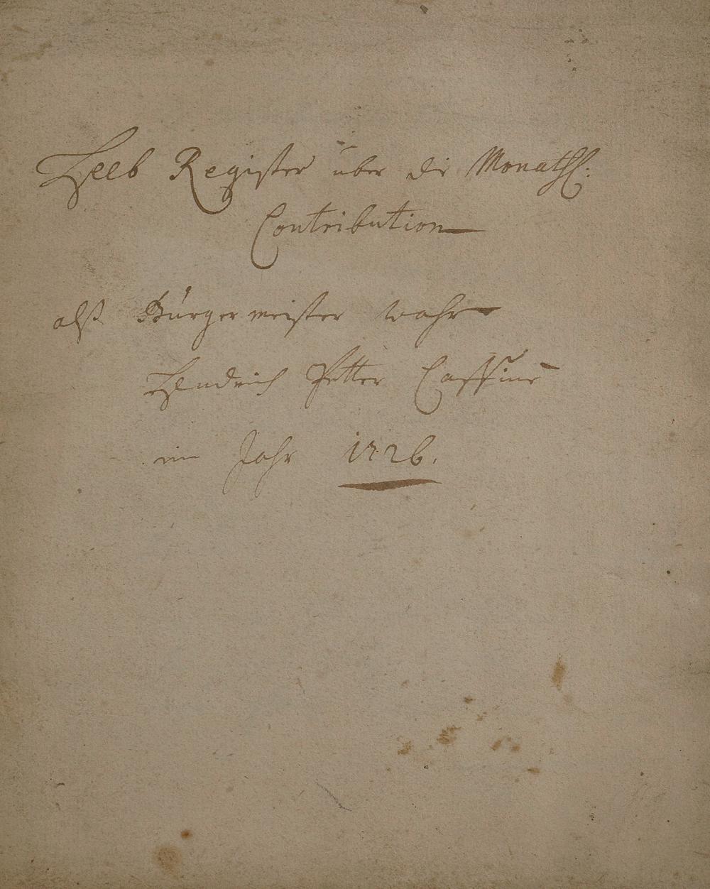 Kontributionsregister angefertigt von Bürgermeister Heinrich Peter Kaffine