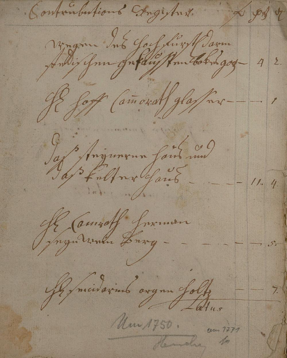 Kontributionsregister angefertigt von Bürgermeister ? und Geselle ?
