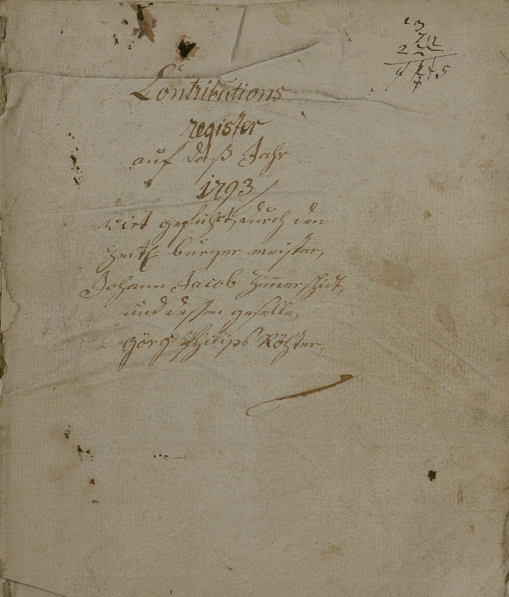 Kontributionsregister angefertigt von Bürgermeister Johann Jacob Zimmerschied und Geselle Georg Philipp Roeder