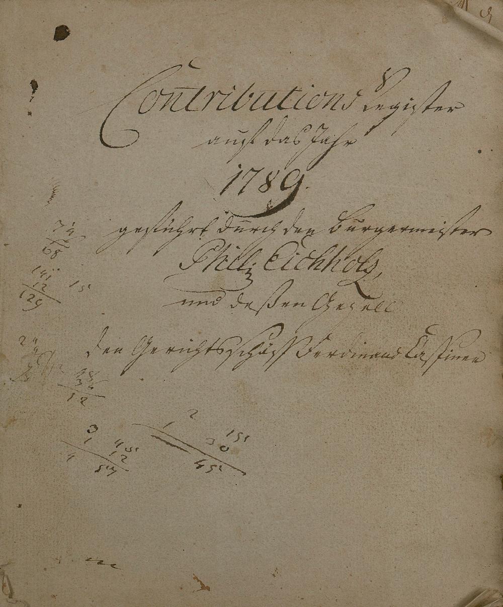 1009: Kontributionsregister angefertigt von Bürgermeister Philipp Eichholtz und Geselle...