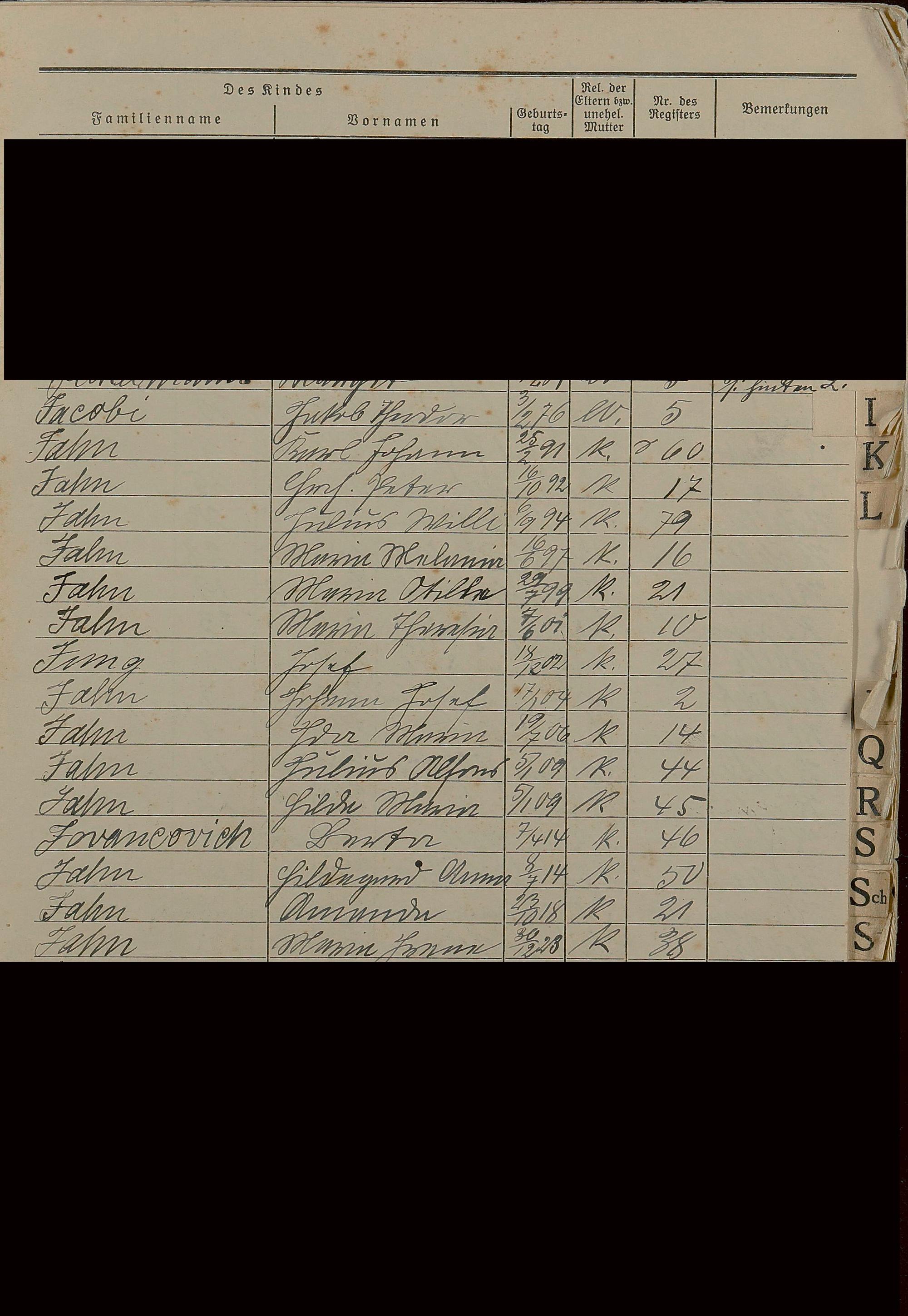 Geburtsregister 1874-1951 - Register A - Z